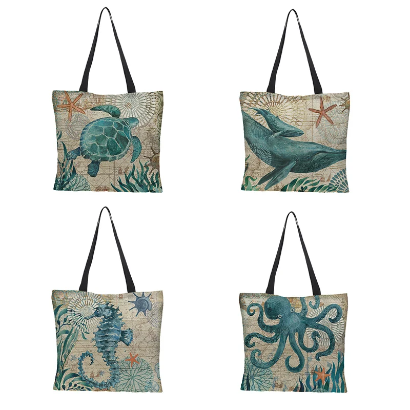 Сумка-тоут на заказ, сумка-тоут с рисунком осьминог, для путешествий, сумка через плечо из эко-льна, сумки для шоппинга для женщин с принтом 43*43 см