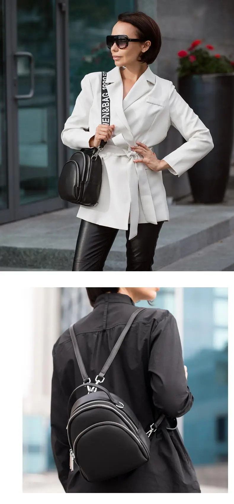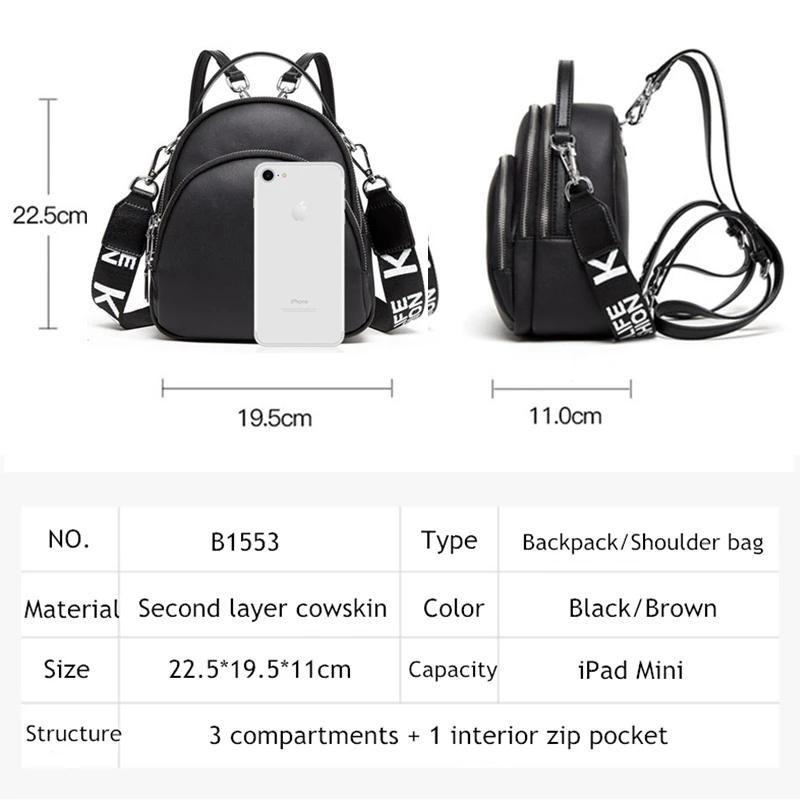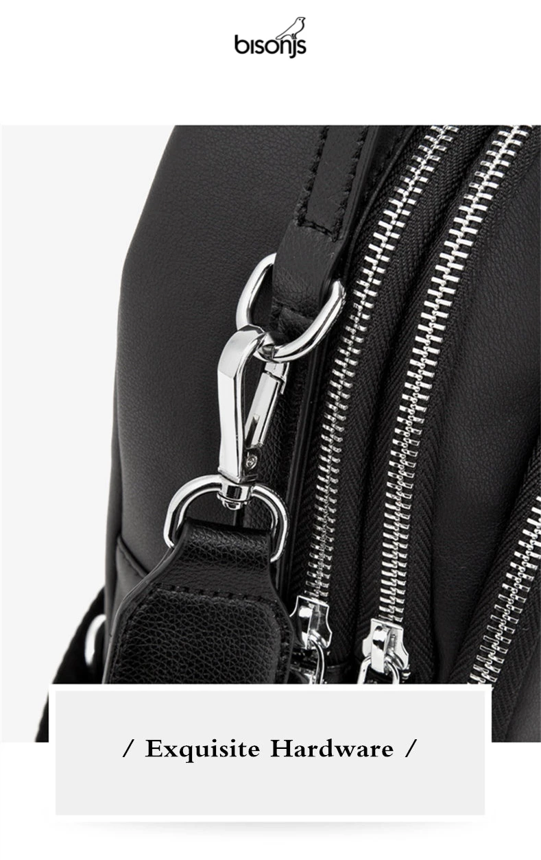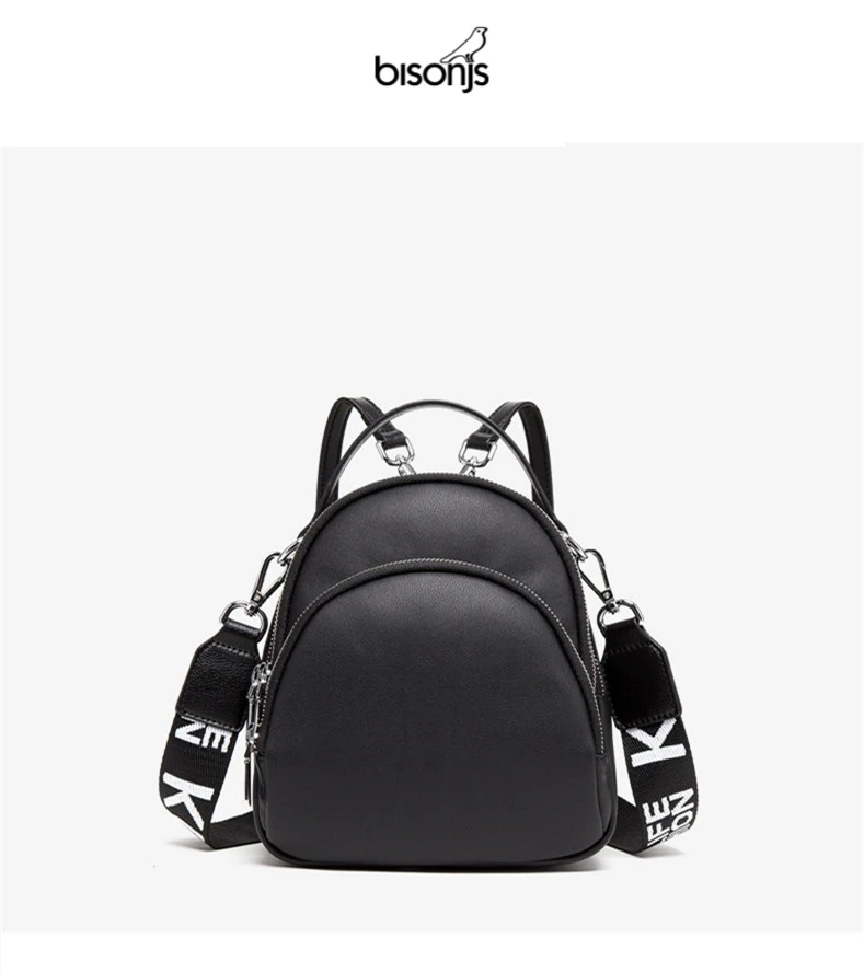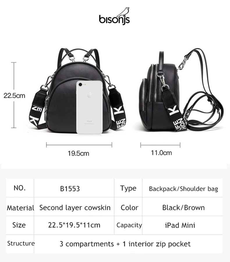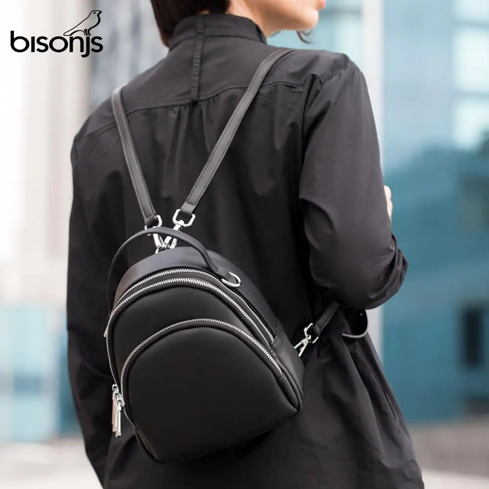 Женский многофункциональный рюкзак BISONJS, кожаная Наплечная Сумка для девушек, маленький рюкзак, женский рюкзак, модель B1553