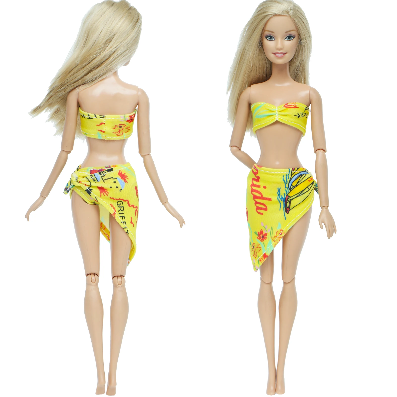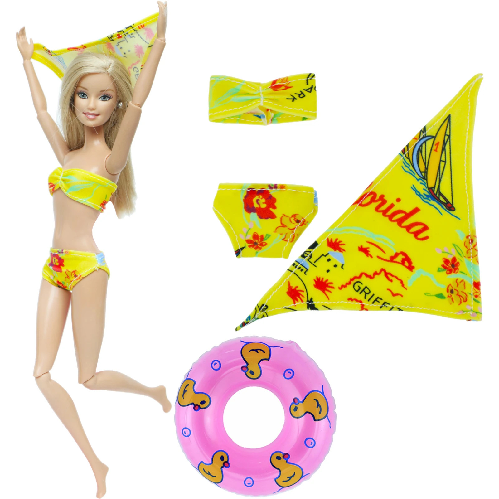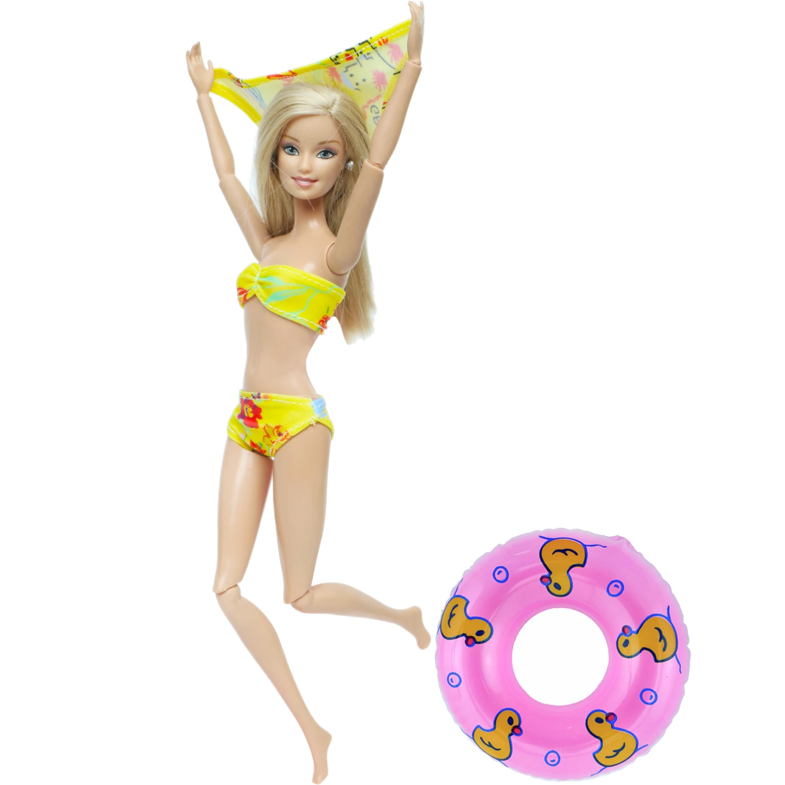 Розовое кольцо для плавания + желтый купальник ручной работы, Лето Одежда для пляжной вечеринки, бикини, сексуальные купальники, Одежда для куклы Барби, 12 дюймов, аксессуары