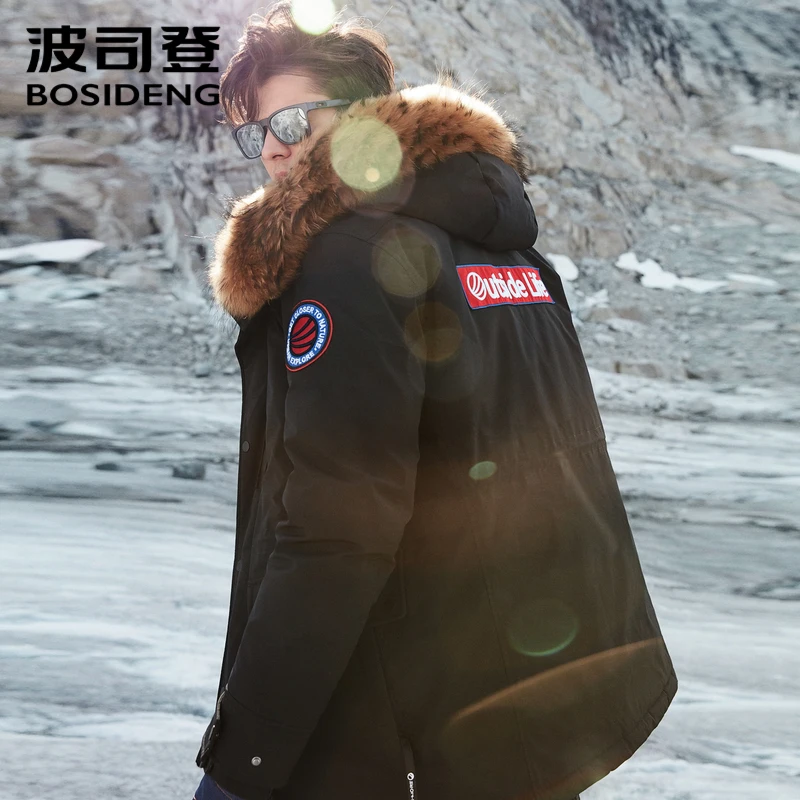 BOSIDENG новая суровая зимняя куртка с гусиным пухом для мужчин, утепленная верхняя одежда с капюшоном из натурального меха, водонепроницаемая ветрозащитная Высококачественная B80142143