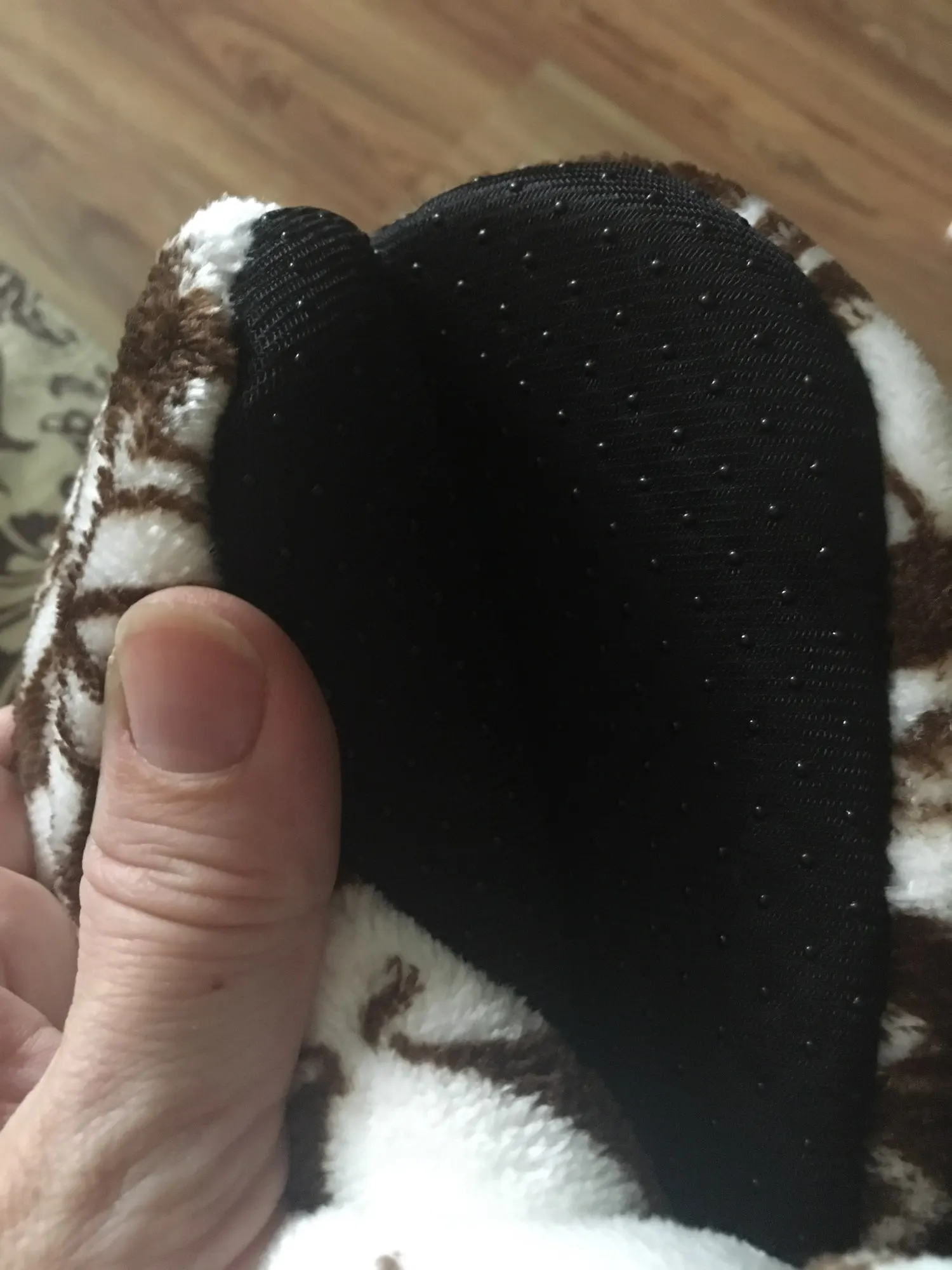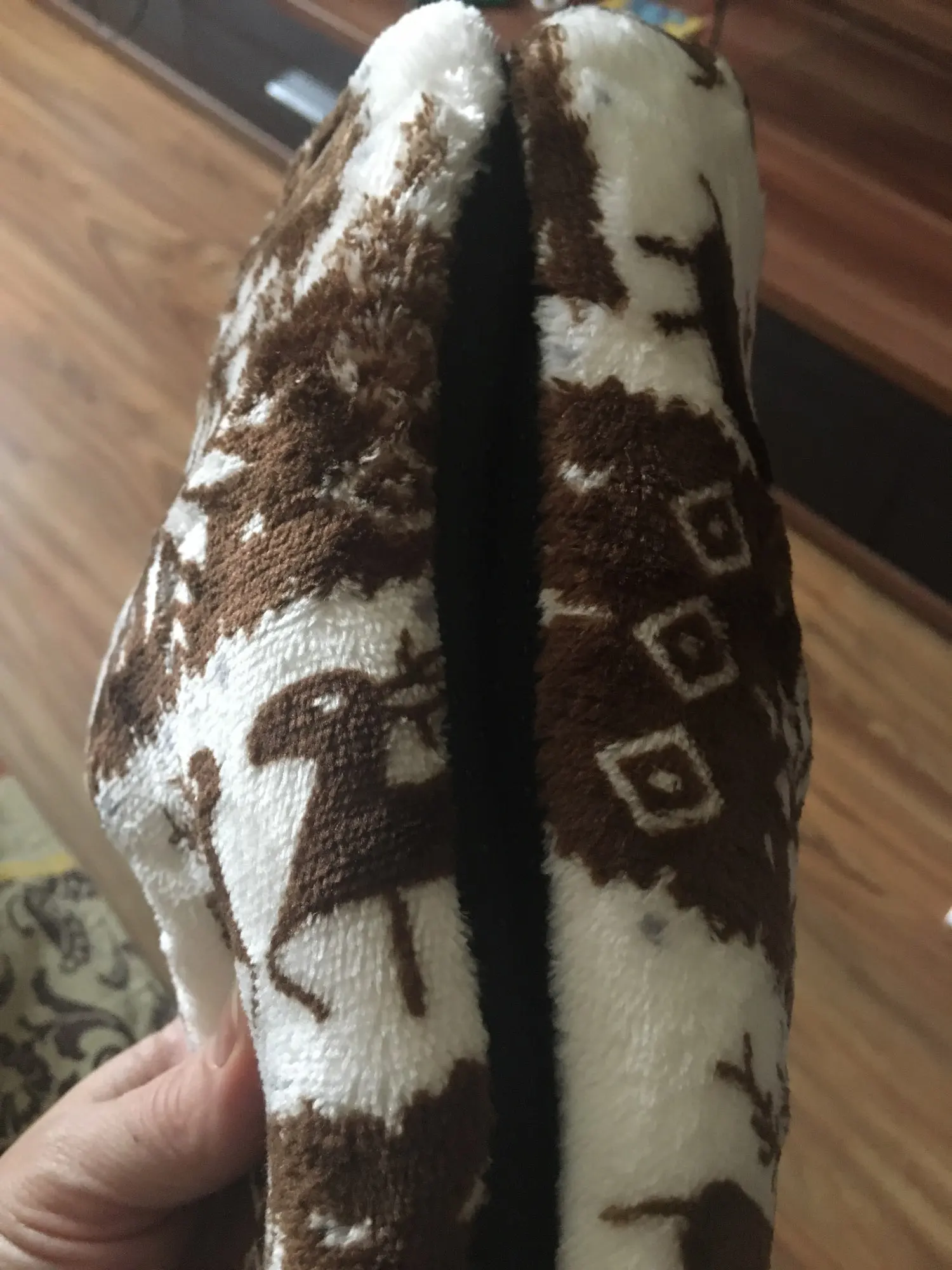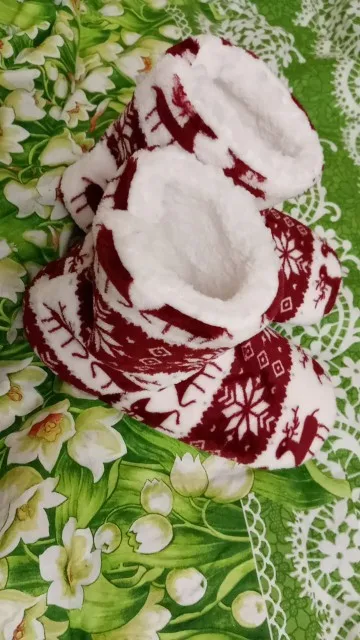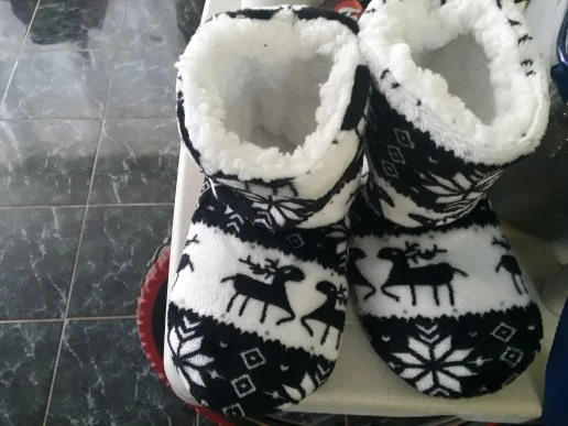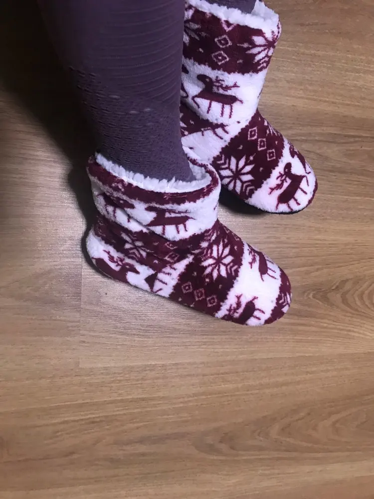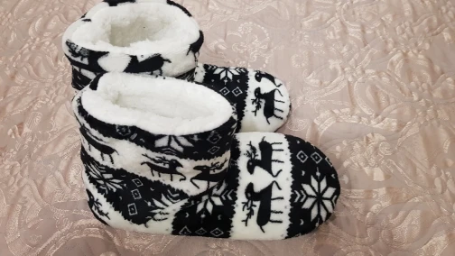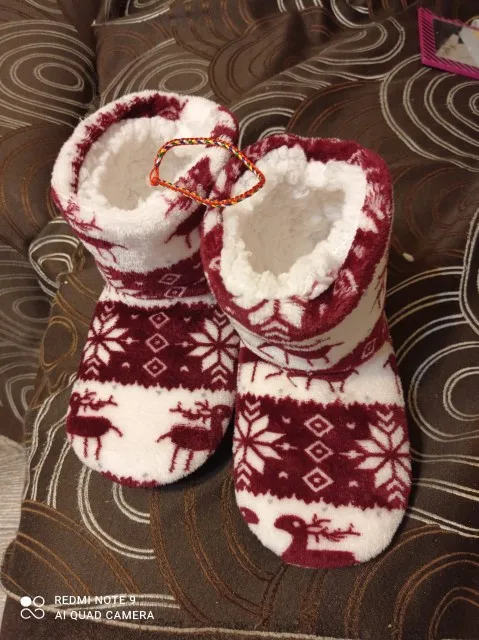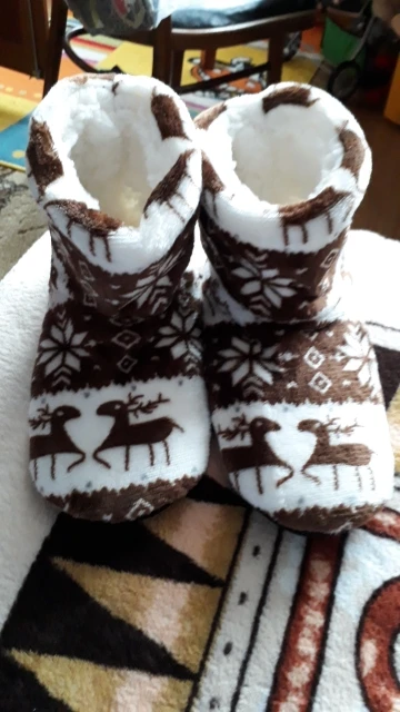 Очень удобные тапочки, хорошее качество, фотографии сделаны уже после первой стирки (машинная стирка в 30 градусов без проблем), очень красивые и теплые, только немного большие-я ставлю 40/41 (европейские размеры) И если бы я снова выбирал размер меньше. :)