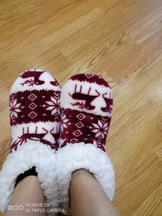 Зимняя обувь для пола, женские тапочки, рождественские носки с оленем для дома, обувь, теплые меховые тапочки, плюшевая стелька, нескользящая подошва