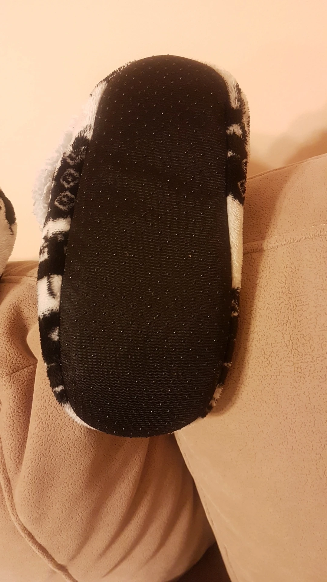 Прикольные тапочки, главное с размером угадать ;-) Соответствуют описанию и фото. Мягкие и лёгкие, думаю на НГ хватит ;-) Трек отслеживался до последнего, пришло сообщение из приложения о доставке. Продавец хороший!