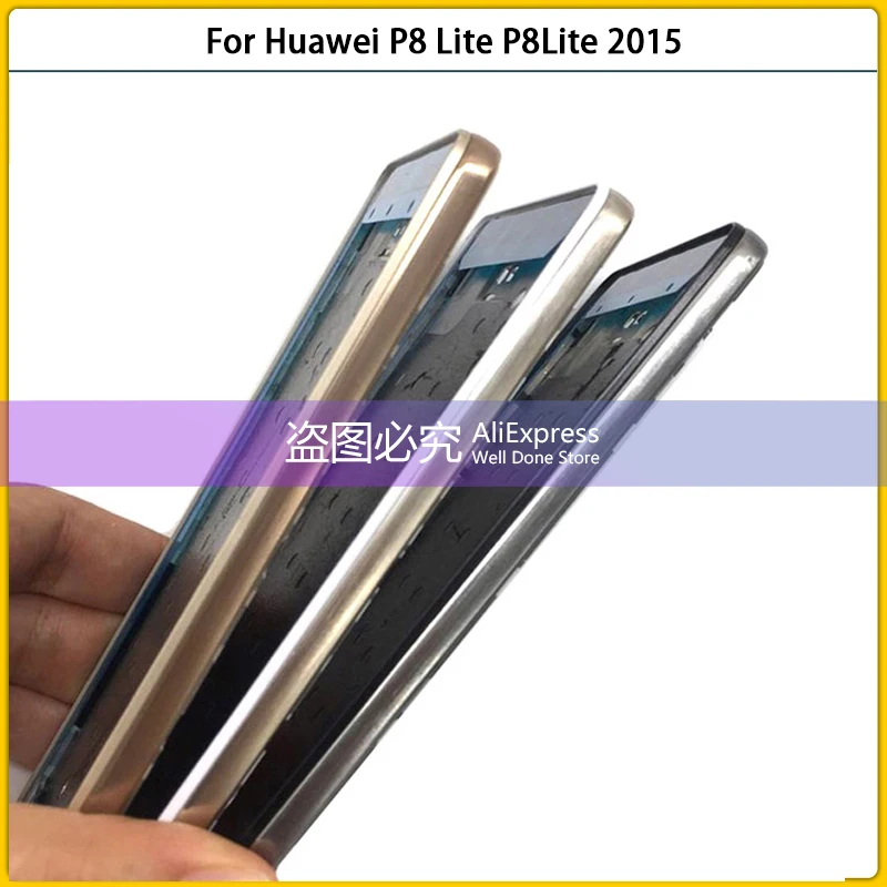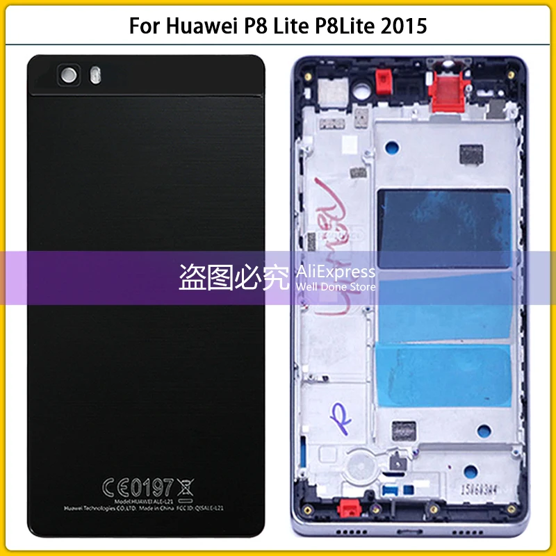 Новый чехол P8Lite с полным покрытием корпуса для Huawei P8 Lite 2015, задняя крышка батарейного отсека, передняя средняя рамка, замена корпуса