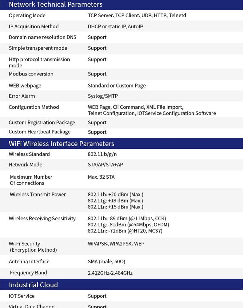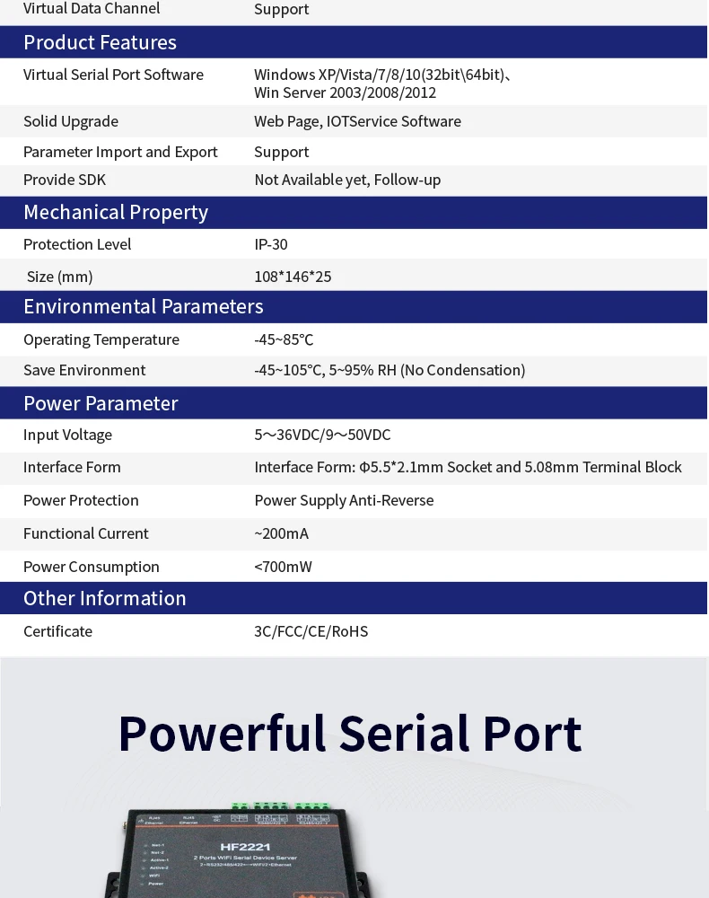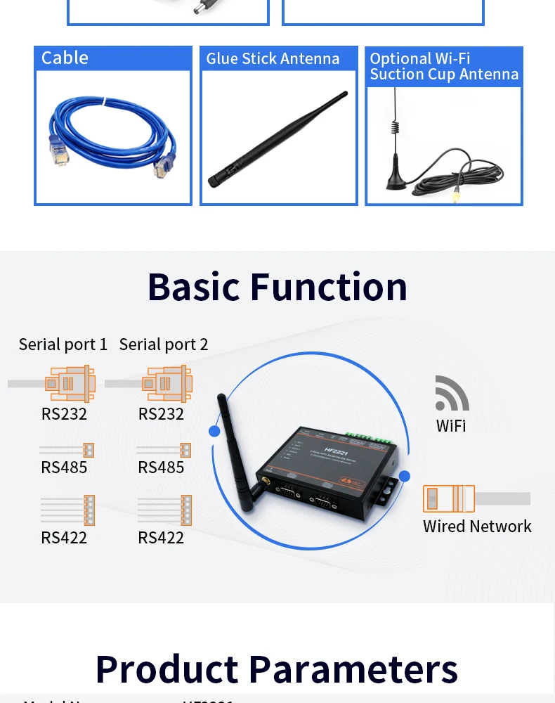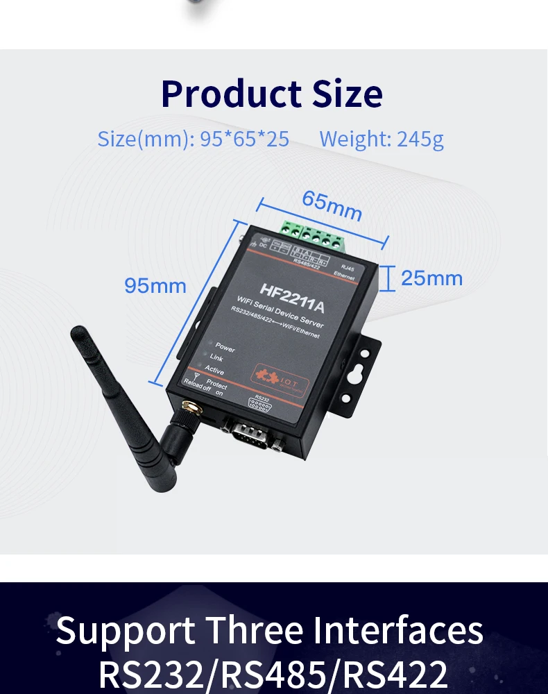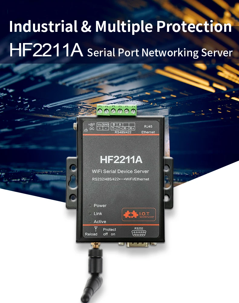 HF2211A поддерживает один порт RS232/485/422 для WIFI/Ethernet
