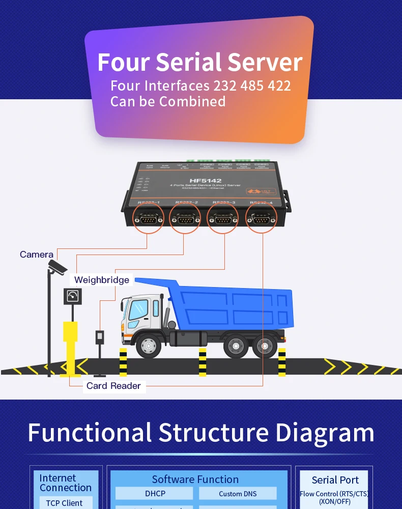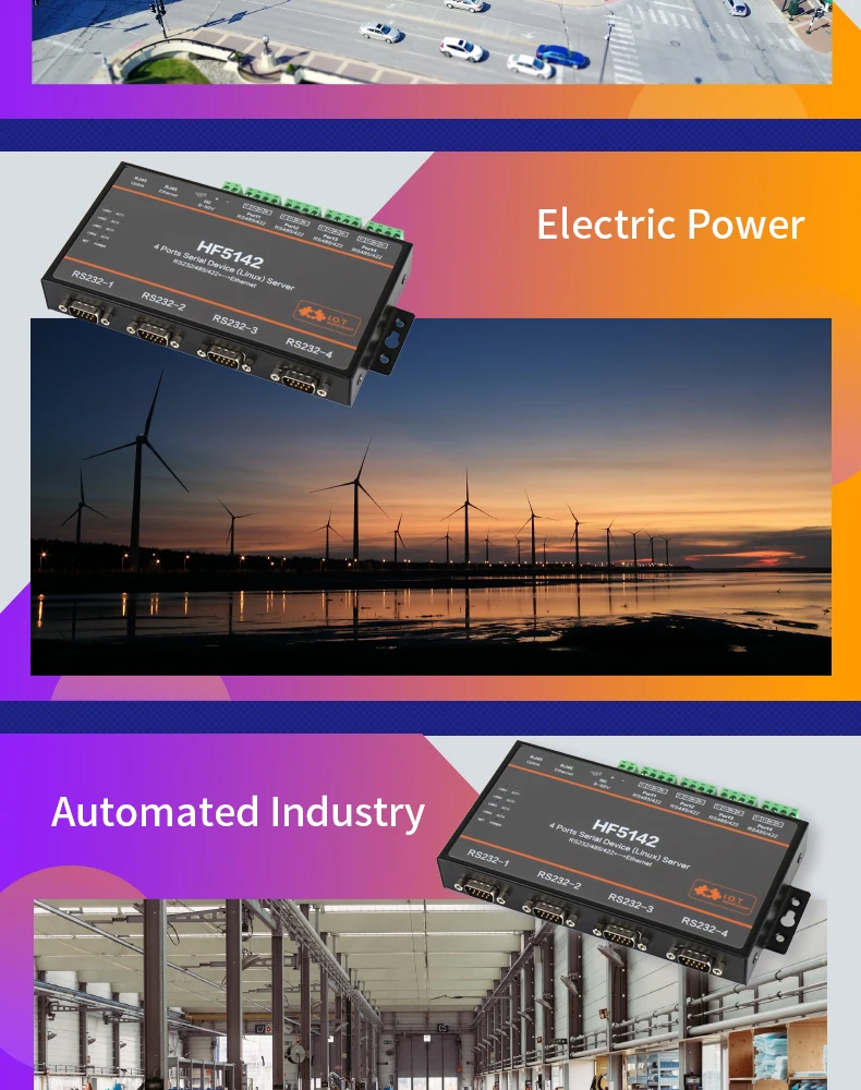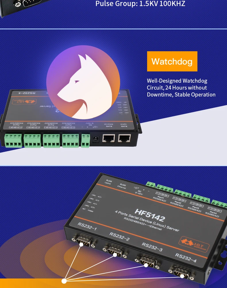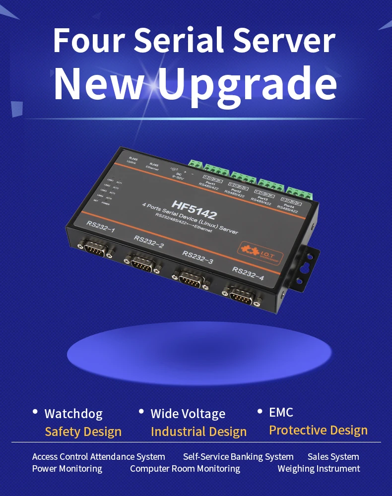 HF5142B поддерживает четыре порта RS232/485/422 к Ethernet