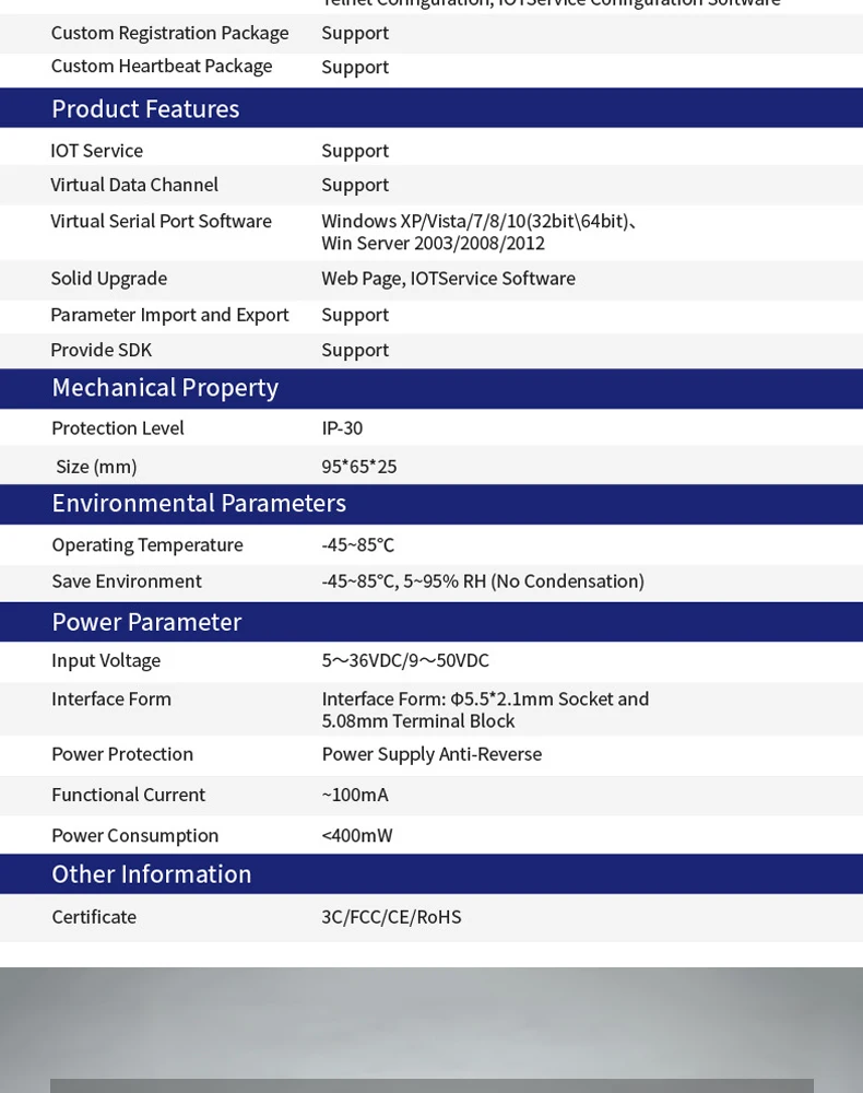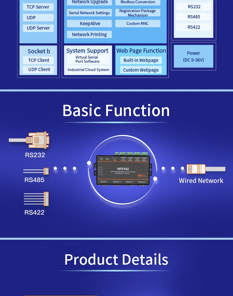 HF5111B поддерживает один порт RS232/485/422 для Ethernet