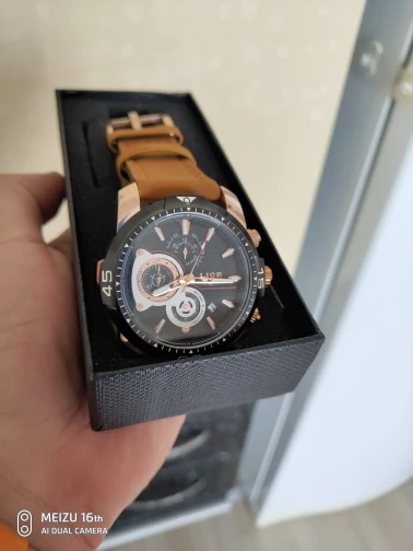 Это отличные традиционные и элегантные часы. Коричневый кожаный ремешок мягкий, моющийся и удобный в носке. Стекло устойчиво к коррозии и имеет корпус из нержавеющей стали. Часы с 3 стрелками и отображением даты. Упаковка также очень элегантная, с золотой пряжкой. Небольшое руководство и небольшая ткань включены для очистки. Качество абсолютно выше, чем цена оплаты. Я доволен покупкой и рекомендую!