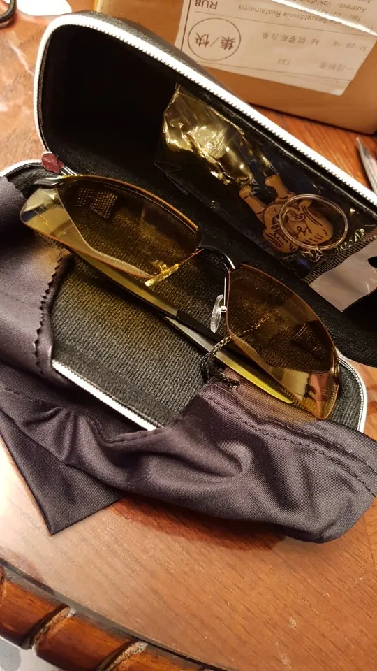 Очки хорошего качества. Пришло в хорошей упаковке, в чехле. В очках действительно не слепит. Продавцу спасибо за подарок.