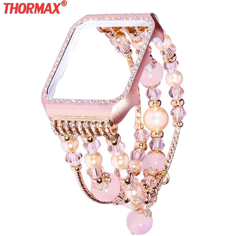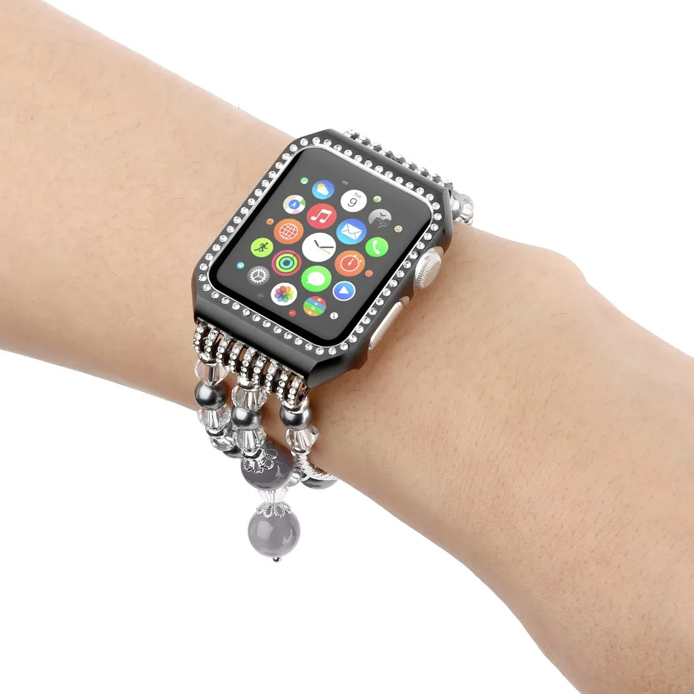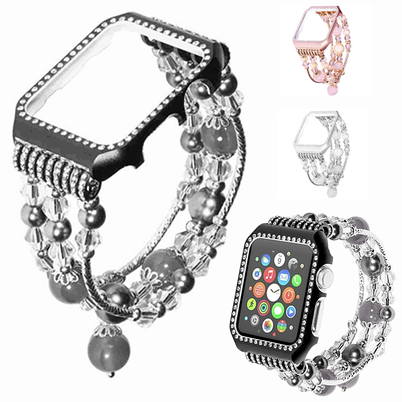 Чехол со стразами для Apple Watch 5, 40, 44 мм, Эластичный браслет ручной работы с искусственным жемчугом, ремешок для iwatch Series 5, 4, 3