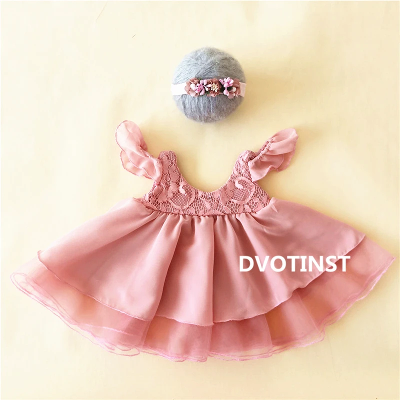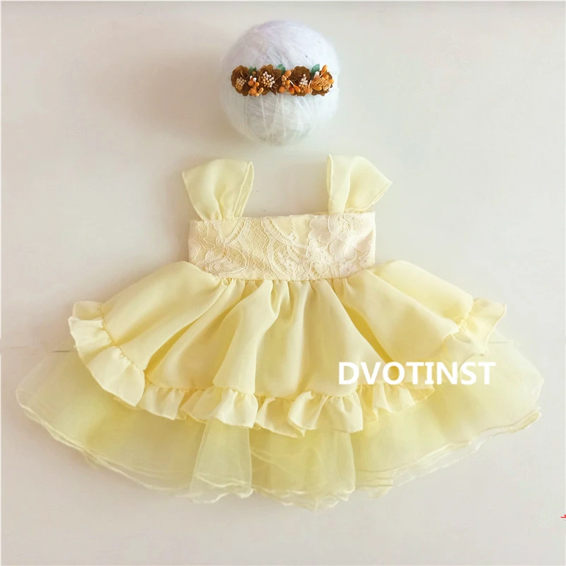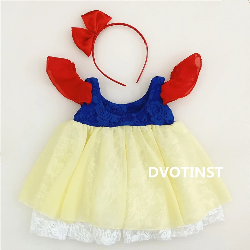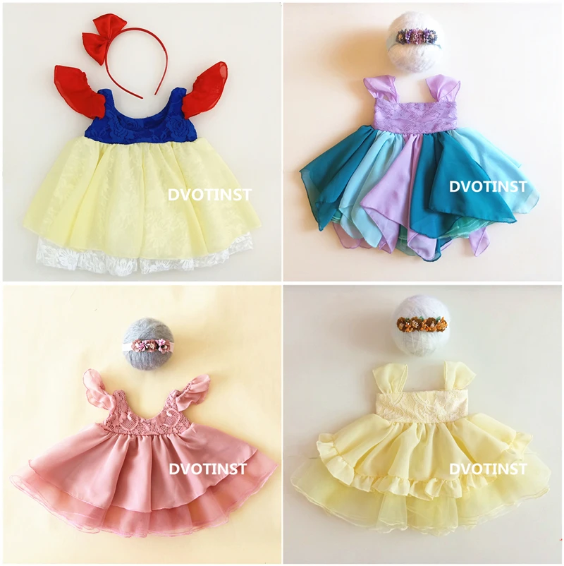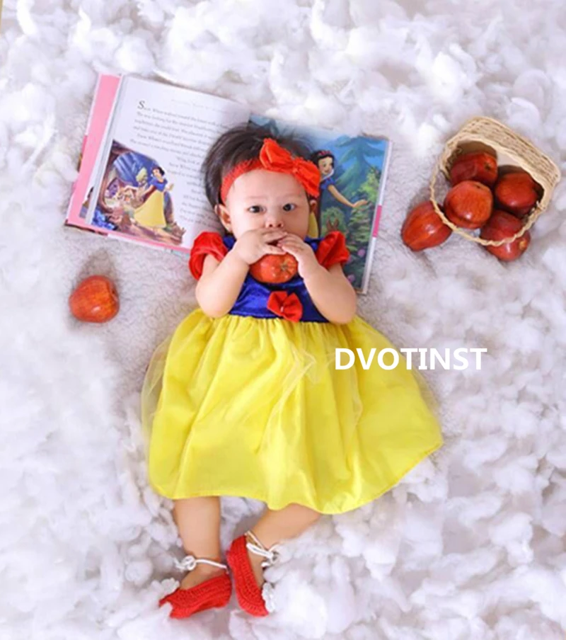 Dvotinst Новорожденный ребенок девочка Фотография реквизит Принцесса Белоснежка платье + повязка на голову наряды костюм Студия фото реквизит