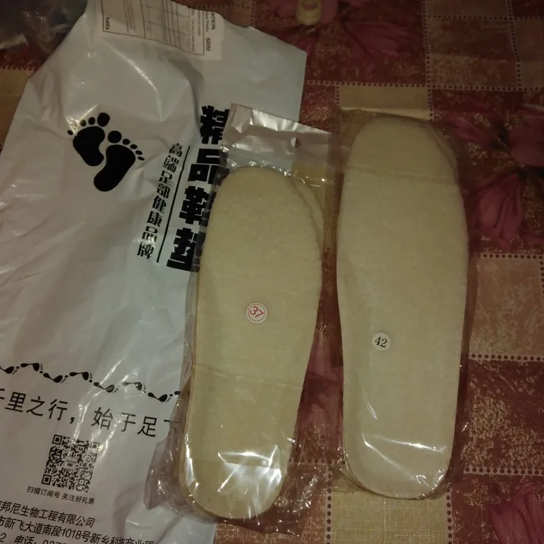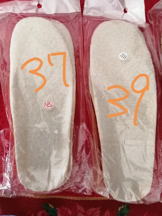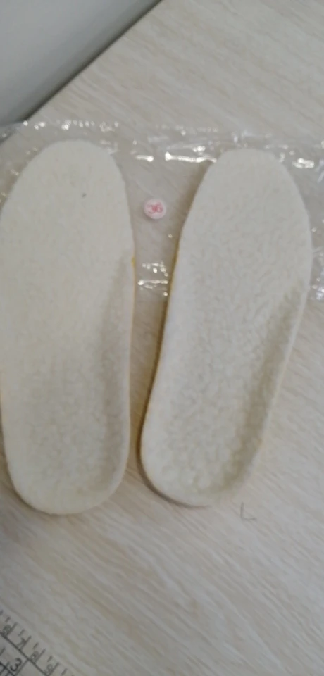 Размеру соответствуют, доставка до Калининградской области три недели, брала дочке для кроссовок, удобные, сомневаюсь, что верх стелек шерстяной, надеюсь, что на сезон хватит.