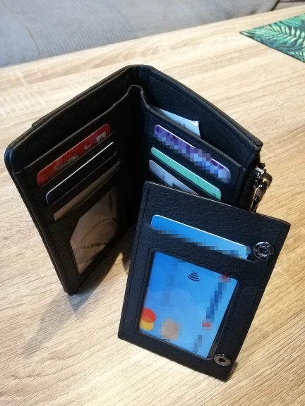 На данный момент очень хорошо, как на картинках. У него есть несколько слотов, чтобы положить карты (около 6), а затем другие отсеки, где вы также можете положить карты. Единственным недостатком, который я поставил, является карман для монет, который очень узкий.