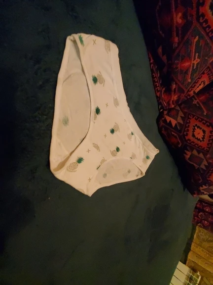 Хлопковые трусики, очень тонкая ткань (белые просвечивают сильно). Мой размер S, по отзывам взяла XL и все равно немножко в прорезях для ног давят(