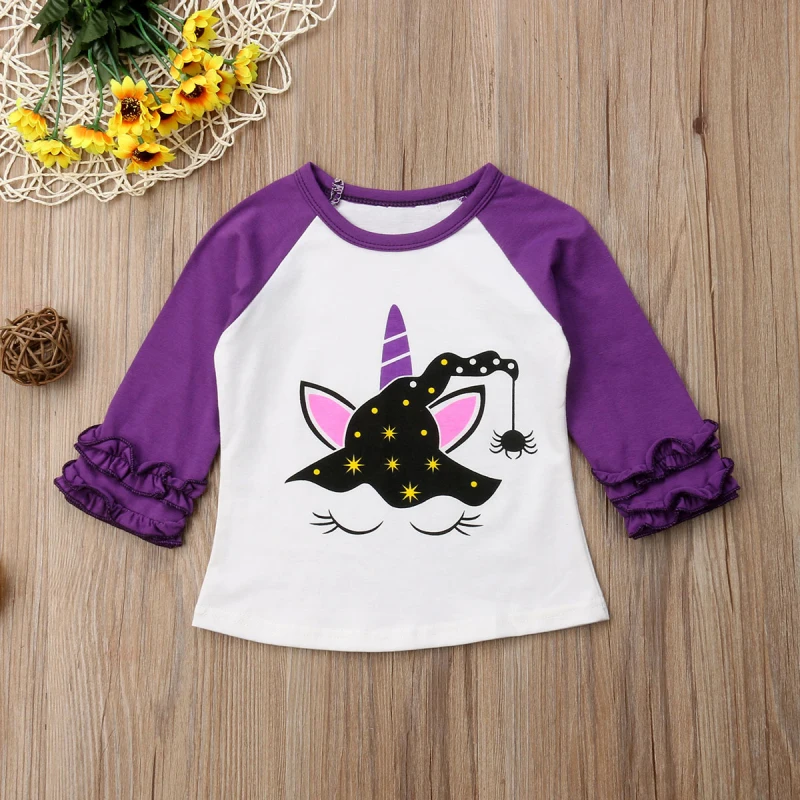 Модная Детская футболка с единорогом для маленьких девочек на Хэллоуин!