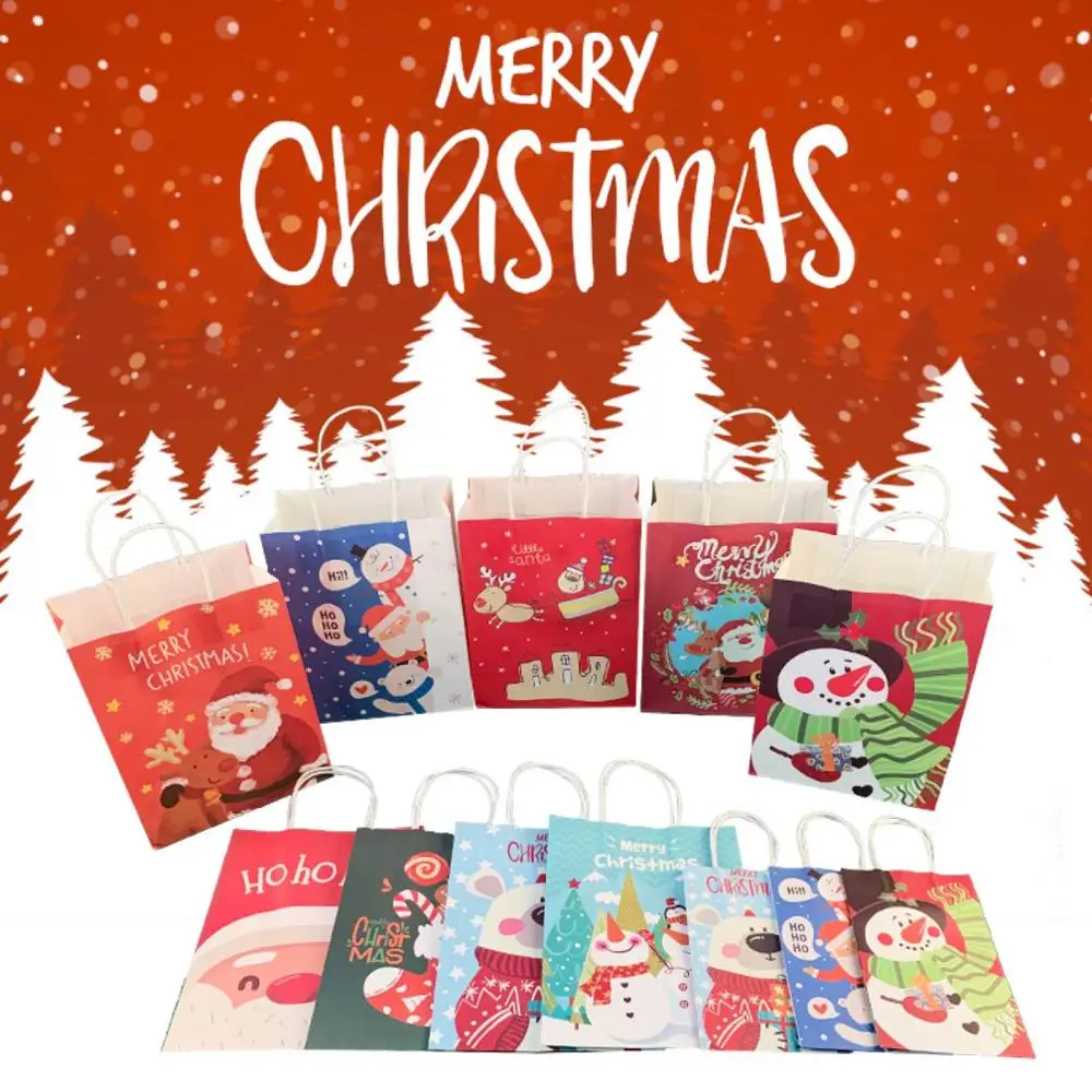 40 шт.лот! 2019 Рождество крафт-бумага праздничные подарочные пакеты, бумажный мешок с ручками, сумка для хранения, оптовая цена