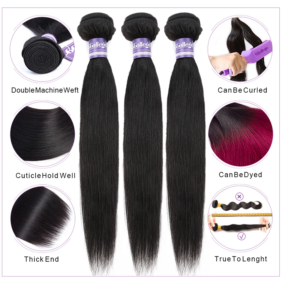 Прямые малазийские пучки волос 8-26 дюймов, 100% человеческие волос...