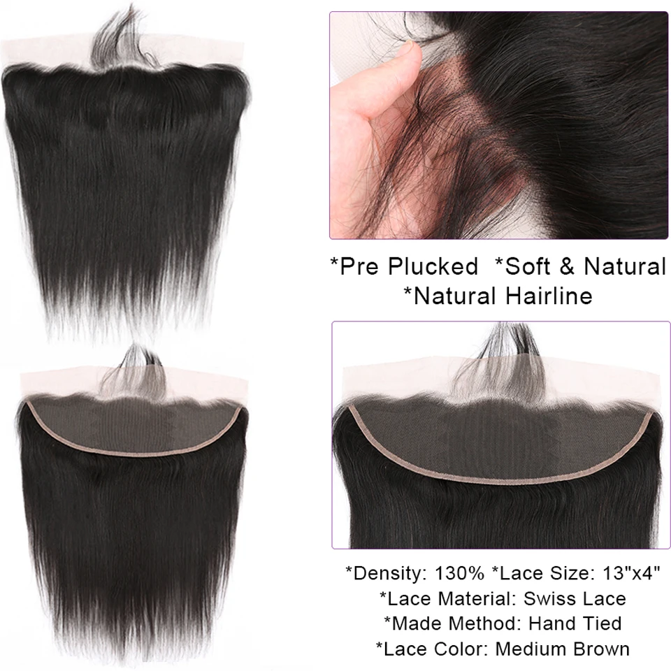 Пряди прямых волос с фронтальной застежкой, бразильские волосы предварительно собранные человеческие волосы, 13x4, Фронтальная застежка с прядями, не Реми