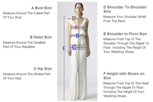 2. Если вы хотите заказать платье на заказ, пожалуйста, оставьте нам сообщение о вашем детальном размереБюст _, талия _, бедра _, полый до пола с обувью _ дюйм или смИ измерьте себя в соответствии с нашей Инструкцией по измерению.