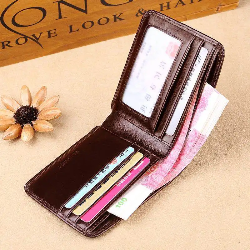 Короткий кошелек pl285 для мужчин, двойной держатель для кредитных карт, чехол-органайзер из натуральной кожи, несколько отделений, черный коричневый