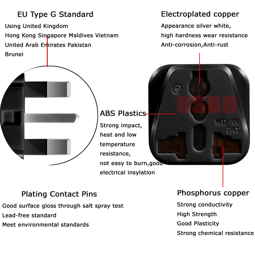 Новый 250v 13a Медь Индия Россия Пособия по немецкому языку французский США ЕС AU К UK, Сингапур, Малайзия Заземленный Тип G штепсельная вилка адаптер для путешествий на выходе