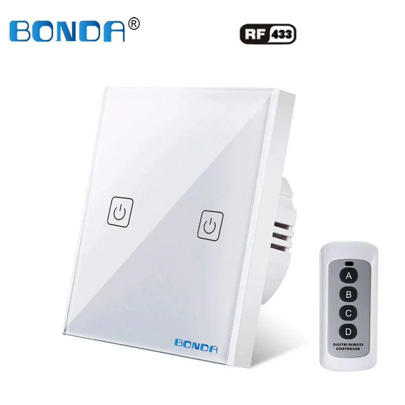 Настенный выключатель BONDA 123 открытый беспроводной пульт дистанционного управления Сенсорный переключатель роскошная хрустальная стеклянная панель выключатель света