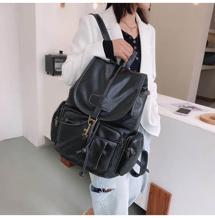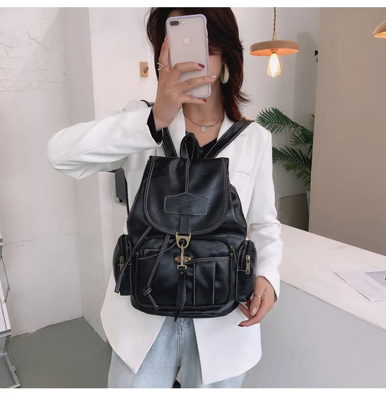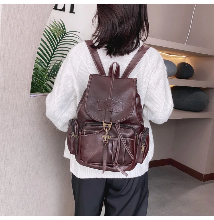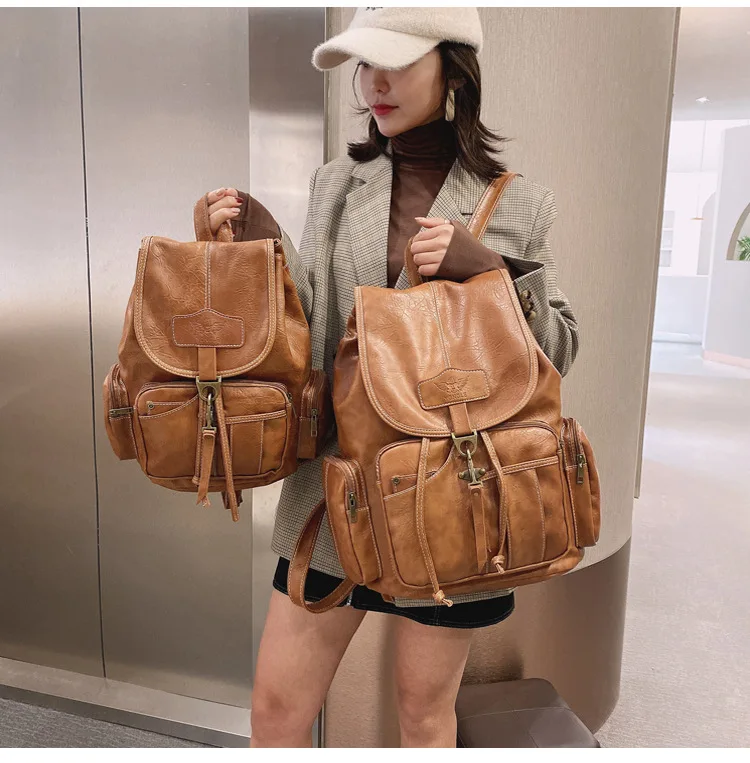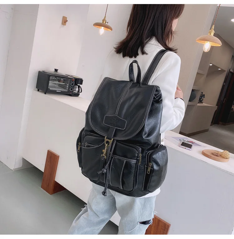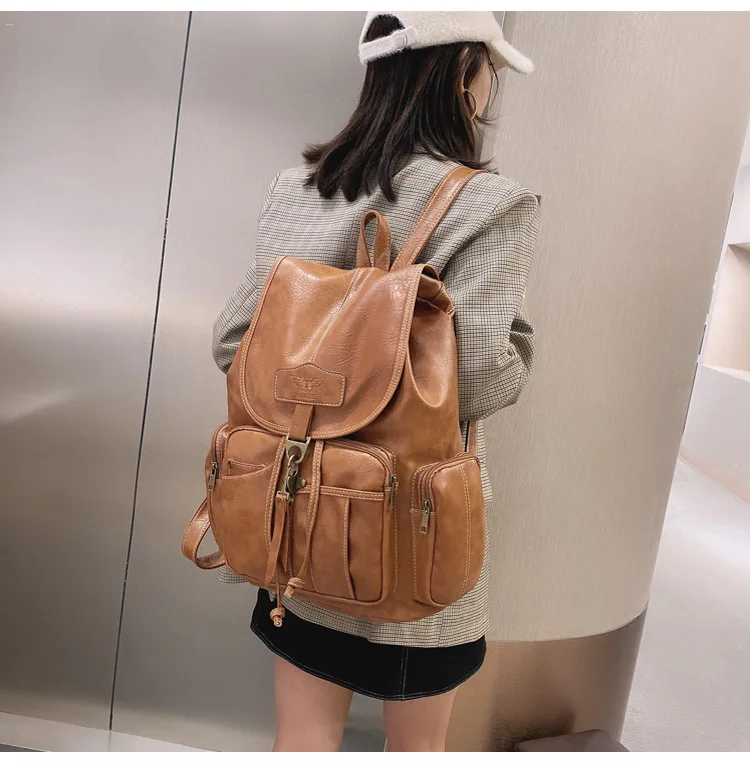 Рюкзак женский кожаный, большой, в стиле ретро, на шнурке, XA150H, 2021