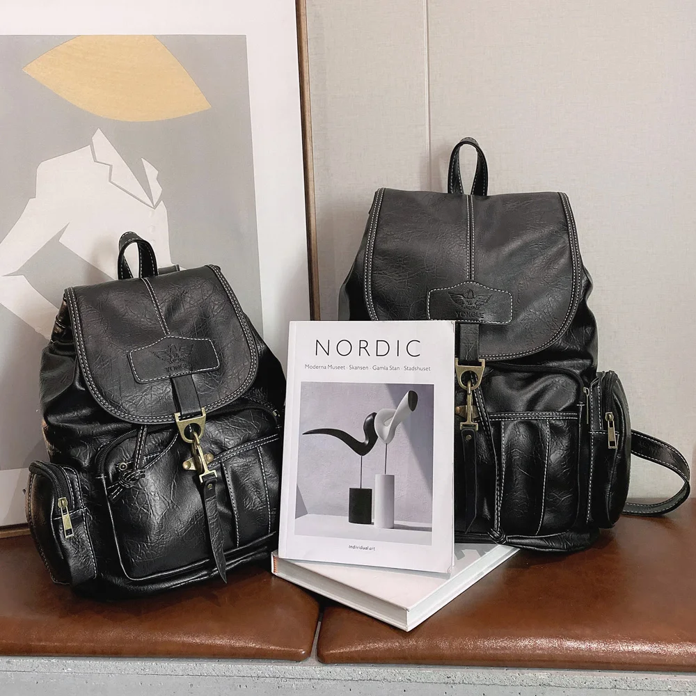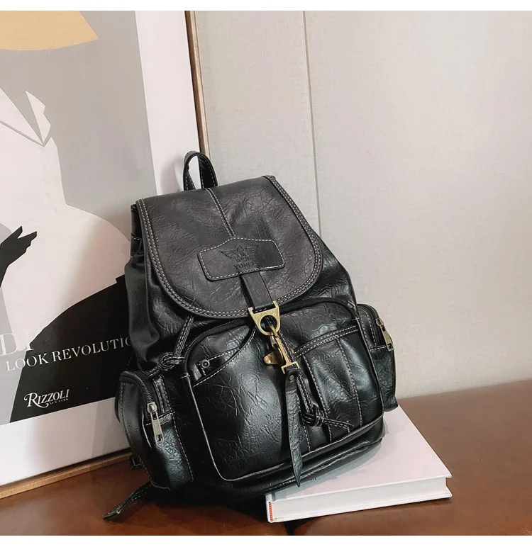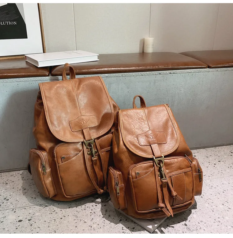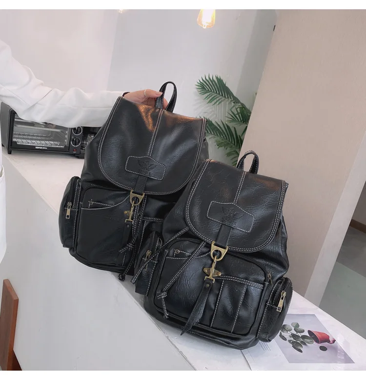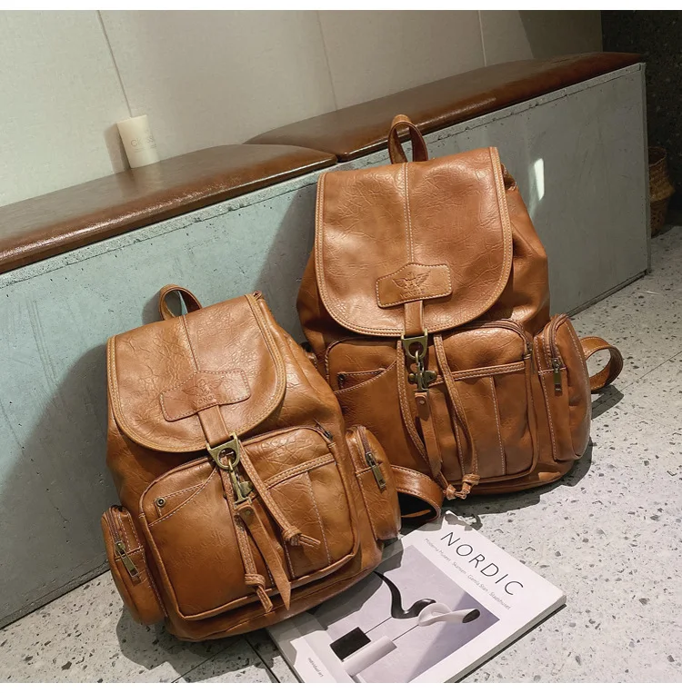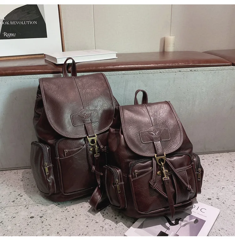 Рюкзак женский кожаный, большой, в стиле ретро, на шнурке, XA150H, 2021