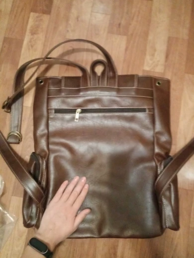 Выбрала кофейного цвета, большого размера L, понадобился носить дочкины вещи в садик (одежду, игрушки, домашние задания в больших папках А4+) Рюкзак прибыл огромный! Нет, не так. Рюкзак прибыл ОГРОМНЫЙ! Ко всему перечисленному можно теперь ещё и саму доченьку посадить во внутрь рюкзака :) Хороший, огромный, шокирует))) Тяжёлый, правда: 1,3 кг примерно. Доставка быстрая, 9 дней до Челябинска, отправка долгая, 10 дней товар не отправляли. Снаружи как на фото продавца, внутри два небольших кармашка, высотой с банковскую карту (что странно для такого огромного рюкзака, могли бы быть и побольше, транспортная карта в чехле вся не помещается, неудобно) и небольшой карман на замке, даже паспорт не поместится, жаль. Зато сзади огромный карман, не пробовала, но, возможно, даже А4 поместится. Фото без вспышки, чтоб был понятен цвет. Рука среднего размера, для оценки масштаба этой громадины))) Рюкзак был упакован свёрнутым пополам, не помялся, просто фото такое. Рекомендую, продавцу спасибо.