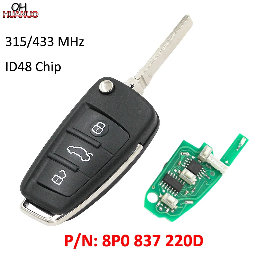 Обновленный складной дистанционный ключ с 3 кнопками 315 МГц или 433 МГц с чипом ID48 для Audi A3 TT 2004-2013 8P0837220D