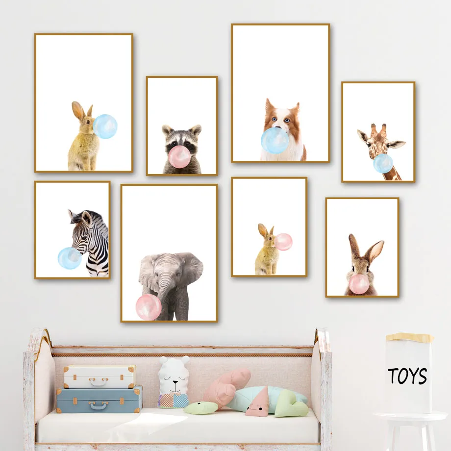 Постеры и принты в скандинавском стиле с изображением слона зебры жирафа енота воздушных шаров животных настенная Картина на холсте настенные картины декор для детской комнаты
