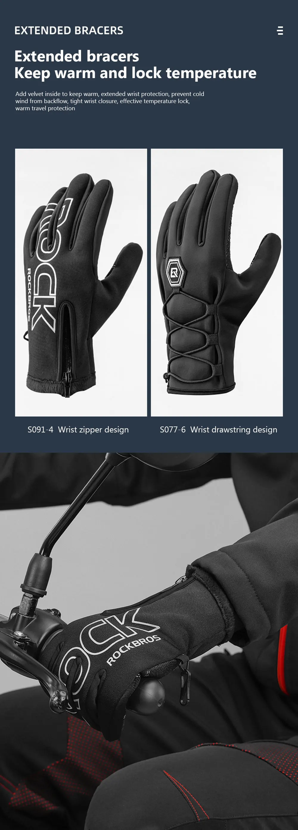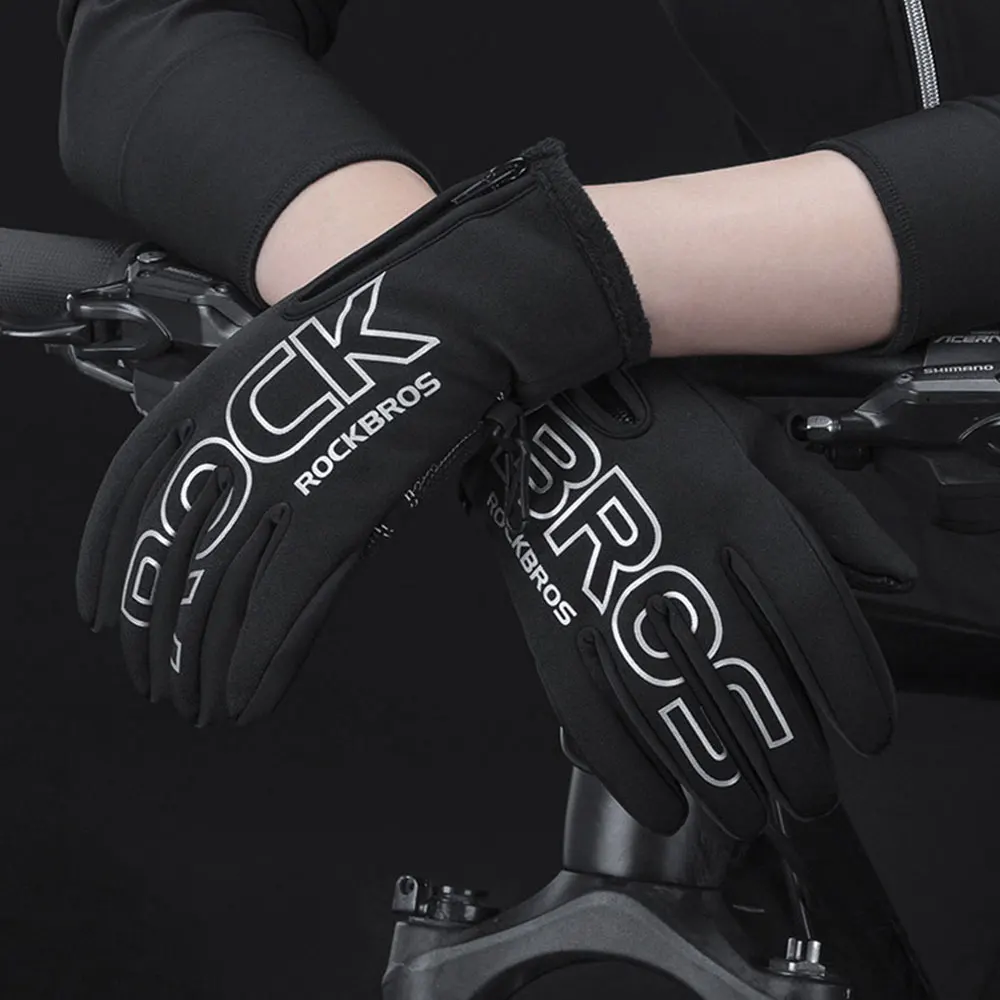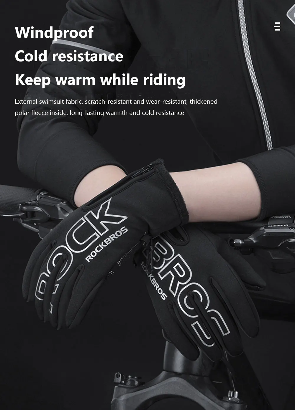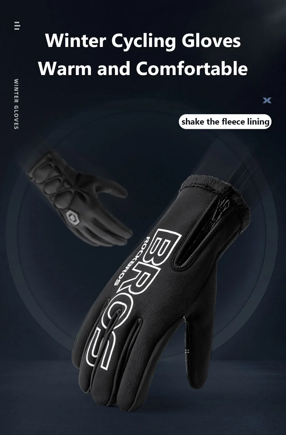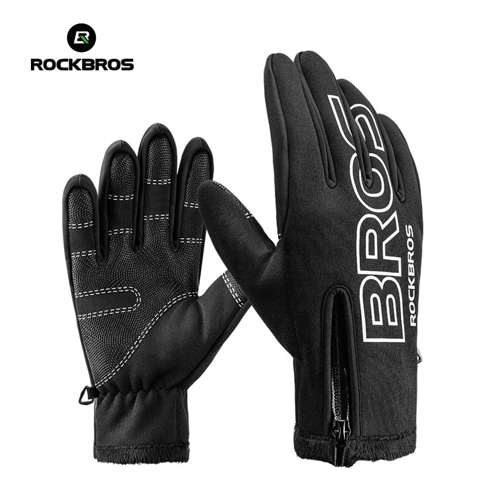 Велосипедные перчатки ROCKBROS для сенсорных экранов, зимние ветрозащитные флисовые теплые нескользящие спортивные перчатки для мужчин и женщин