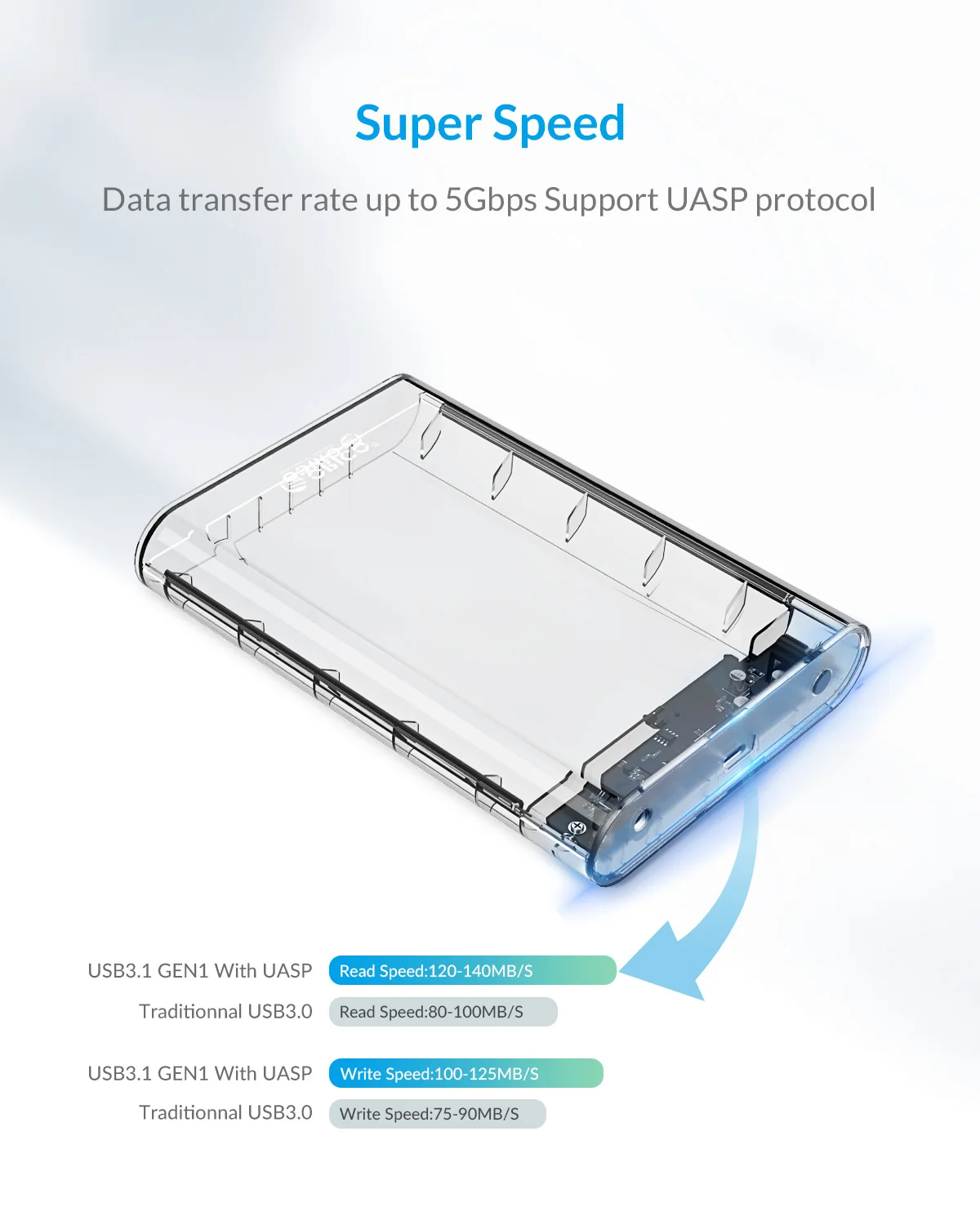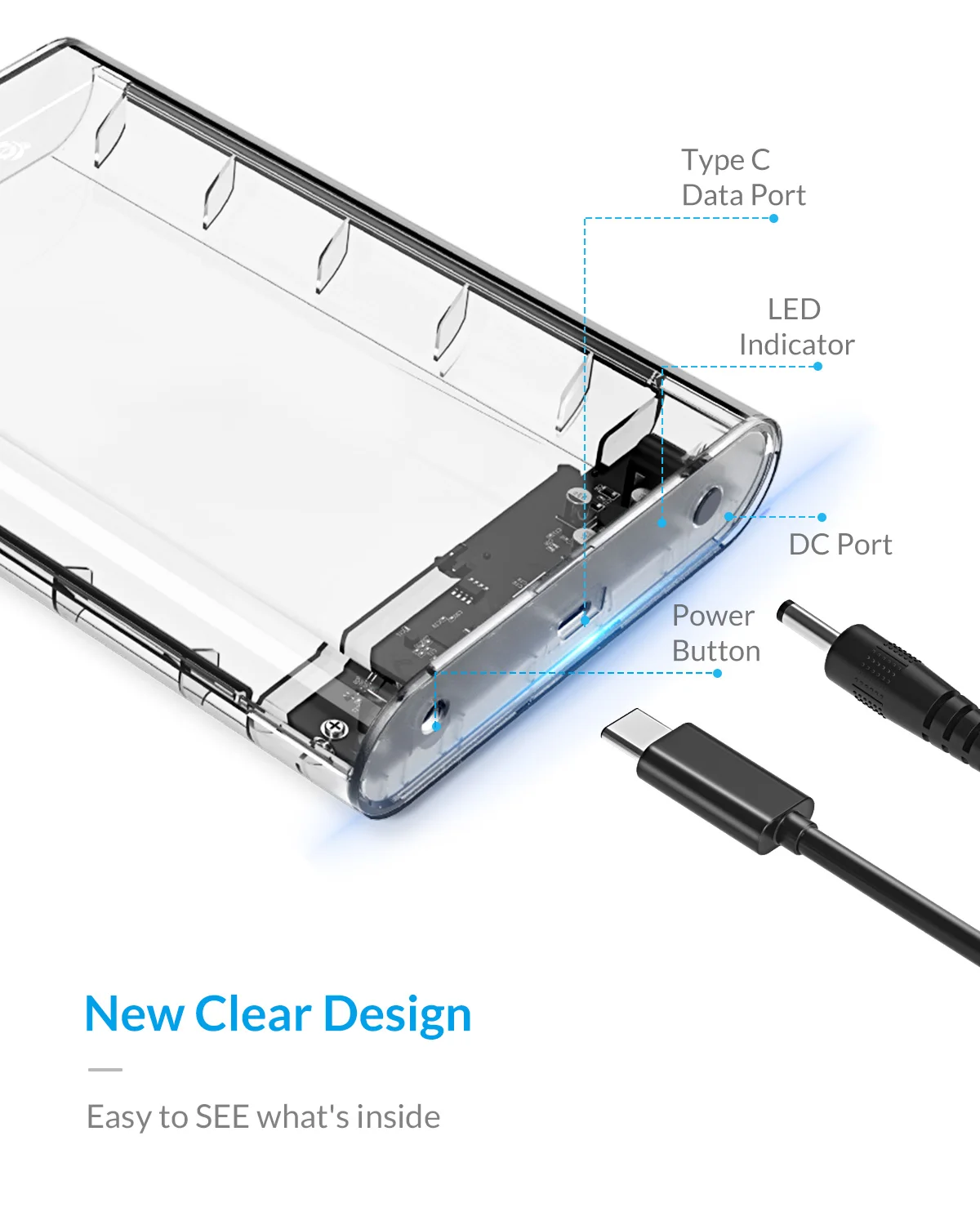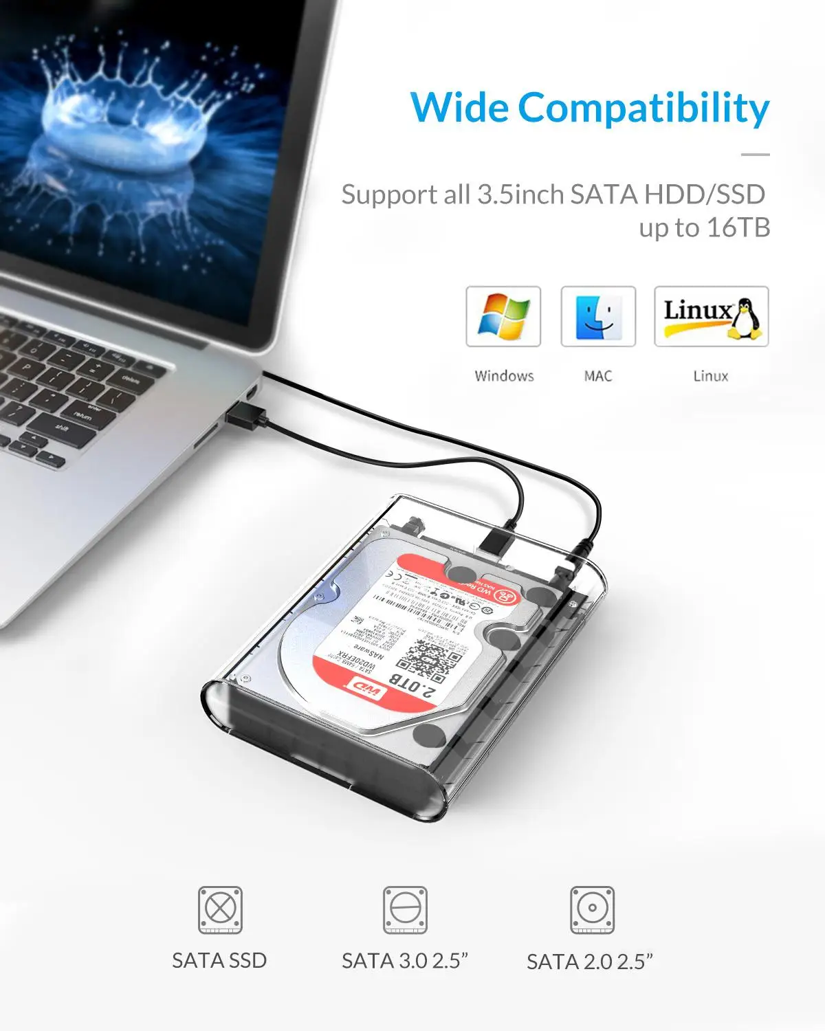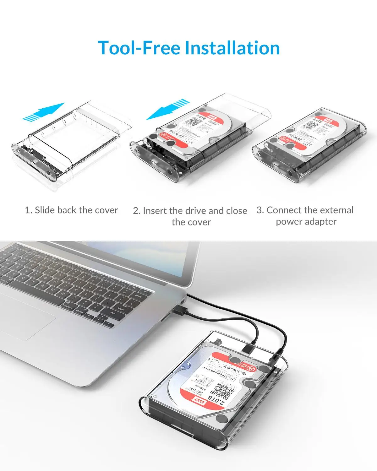 ORICO 3,5 дюйма SATA к USB 3.1 Тип C прозрачный жесткий диск чехол SSD адаптер 12 ТБ коробка для жесткого диска внешний корпус для хранения HDD