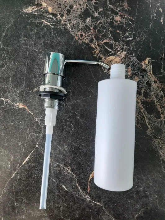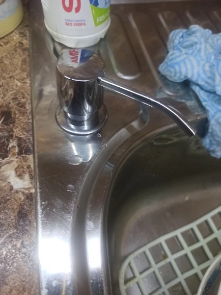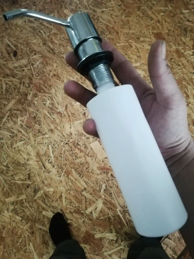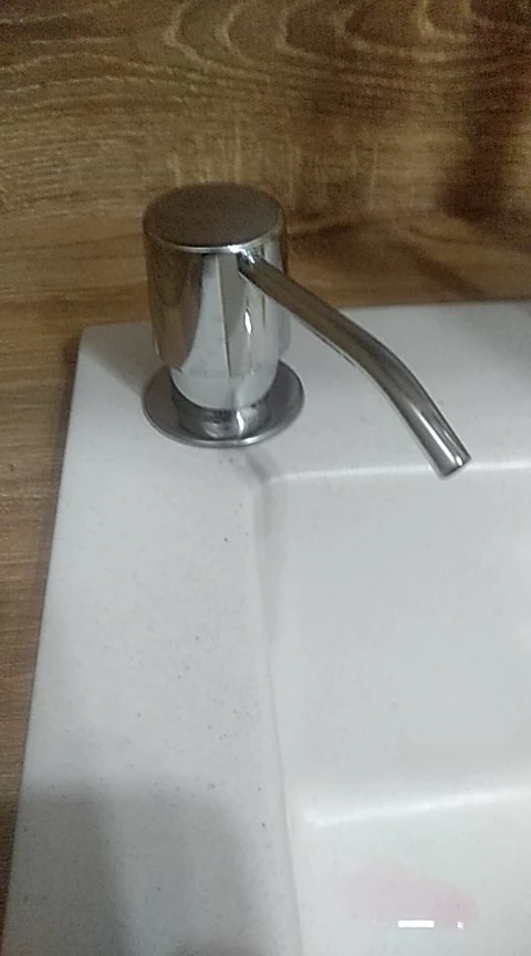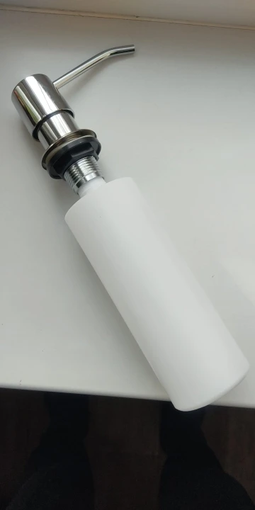 Классная штука. Верхний колпачок с носиком металлические, поворачиваются в любую сторону, если мешает во время мытья посуды. Установил за 10 мин с помощью шуруповёрта и ступенчатого сверла. Механизм пластик как и любой дозатор которые продаются в бытовых магазинах. Кстати если что подходят от любого моющего средства, разве что не так красиво. Пришло в Тверь за две недели. Продавцу спасибо. Рекомендую.
