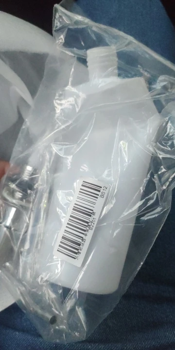 Выглядит нормально, работает, все пластиковые, только шланг кажется металлическим, бутылка пришла немного вмятина, в целом-хорошо! Свяжитесь с продавцом!
