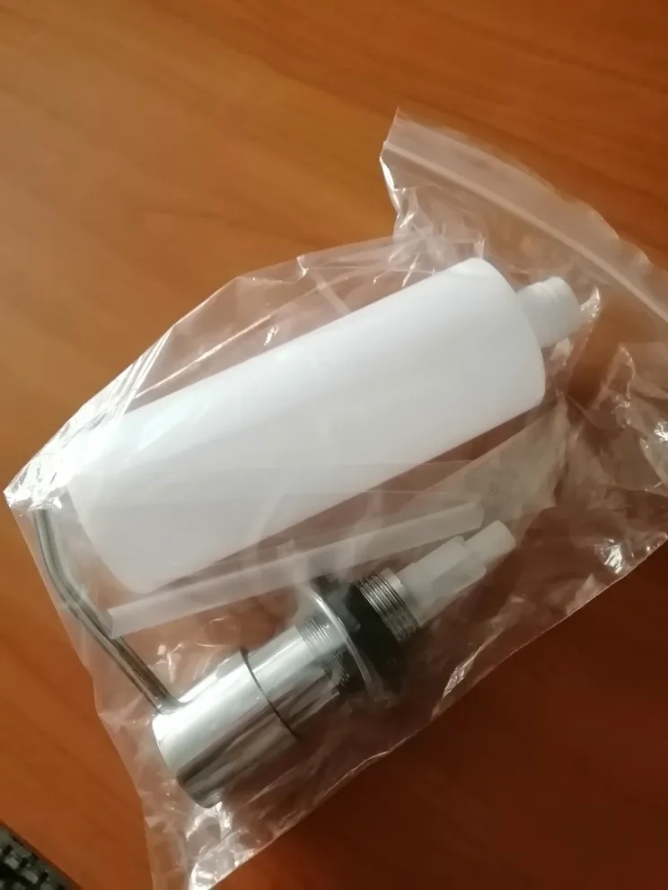 Быстрая доставка. Описание соответствует. Качество хорошее. При заказе нужно учесть толщину кухонной столешницы. У нас столешница оказалась шире, чем максимально возможная толщина для установки диспенсера. Емкость для мыла подошла к имеющемуся диспенсеру.
