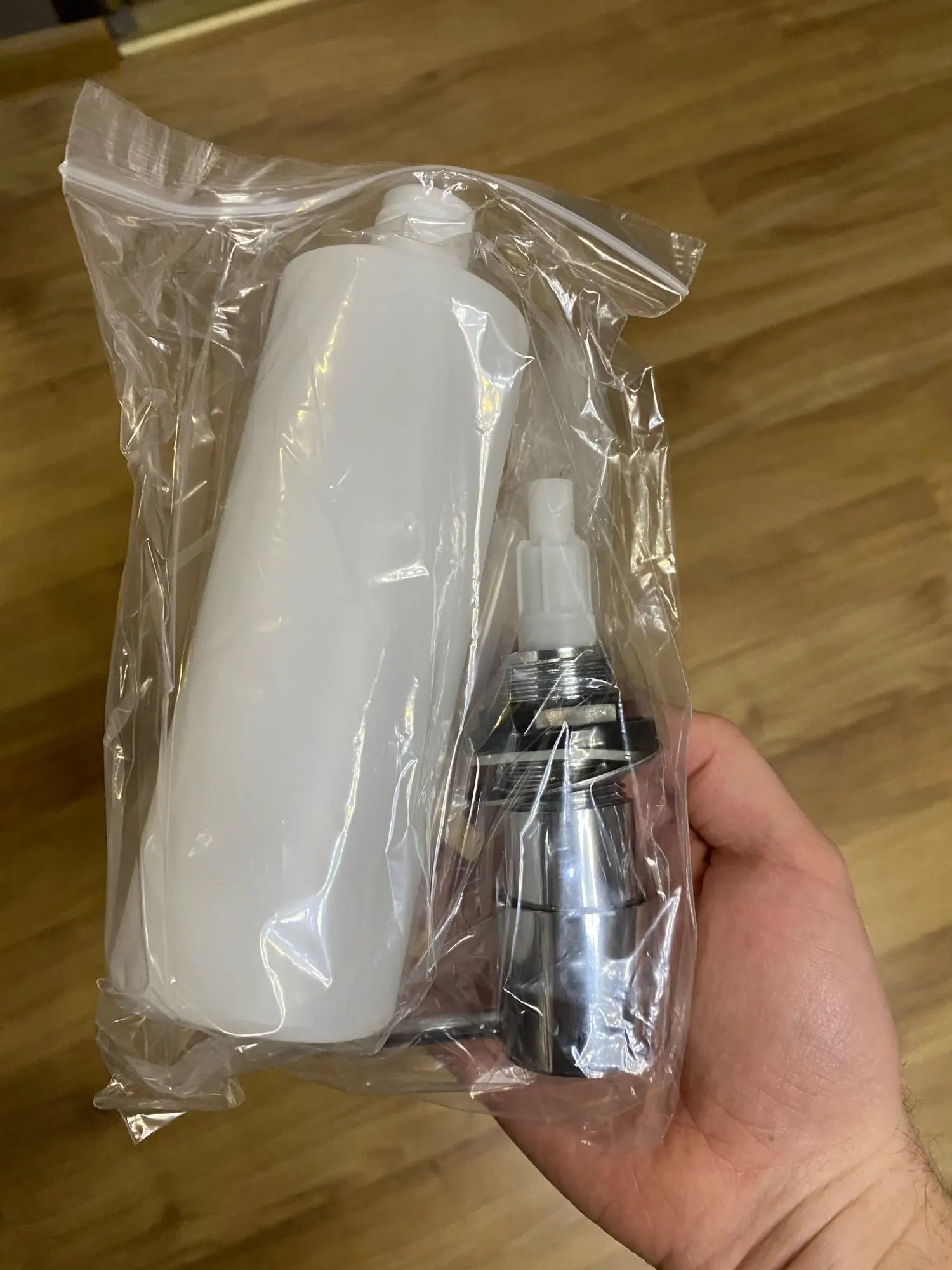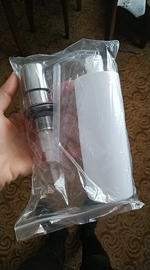 Очень хорошая и быстрая доставка, бутылка немного слишком легкая, чтобы использовать как обычный дозатор, но в противном случае идеально. Я попробую найти другую бутылку, так как раковина не имеет отверстия для нее.