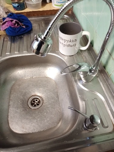 Качество, так себе, из металлической только носик. Думаю, стоит ли теперь сверлить мойку либо столешницу.