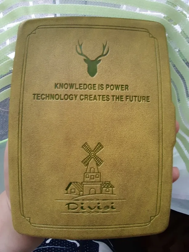 Всё хорошо. Доехал за месяц почти. Приятный на ощупь. Прорезиненный. При открывании обложки включается экран книжки