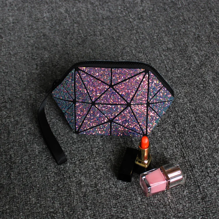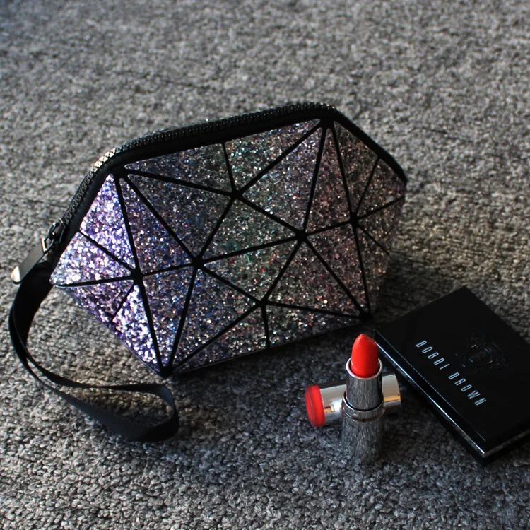 Геометрическая косметичка для женщин, блестящая дамская сумочка bao для макияжа с блестками