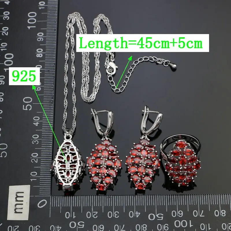 Женский ювелирный комплект из колье, серёг и кольца, из серебра 925 пробы