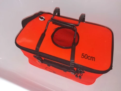 Заказ прибыл вовремя. Качество товара хорошее. Такой сумкой пользуюсь уже второй сезон. Эту купил на подарок. Воду не пропускает. Можно использовать под живцовку, забирать с собой улов (моется легко, сушится быстро, мухи не залазят!). При необходимости можно в ней замешать и хранить прикормку. Ходил с нею и по грибы. Единственный недостаток, правда быстроустранимый, это короткая шлейка.