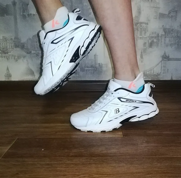 Беру эти кроссовки, после нещадной эксплуатации другой модели от Bona которые на фото. Выбор этих - по причине более рифлёной подошвы. как будут носиться, возможно, отпишусь. Хотел добавить отзыв про предыдущем шузам, но по прошествии полугода это сделать невозможно. Однако рассказать надо. Покупал для работы на пароходе в рыбном цеху. В условиях когда везде морская вода, ходить приходиться по пайлом которые в чешуе, рыбной слизи. Причем работа по 12 часов в сутки. Думал разваляться за пол года, как многие другие, но - нет. Оказалось что и воду держат, и от ежедневной сушки не скукоживаются и удобные, лёгкие. Замечательные во всех отношениях.