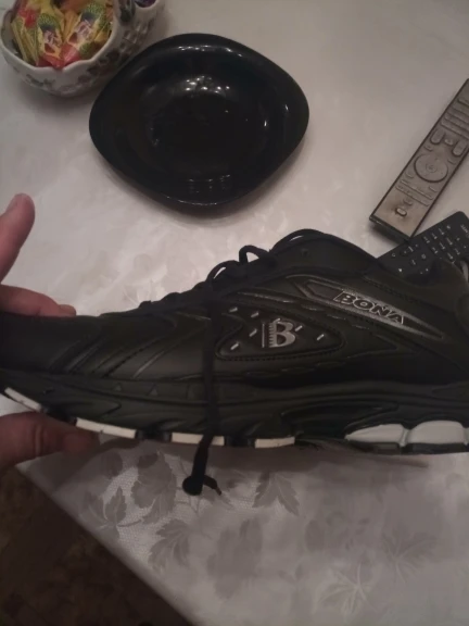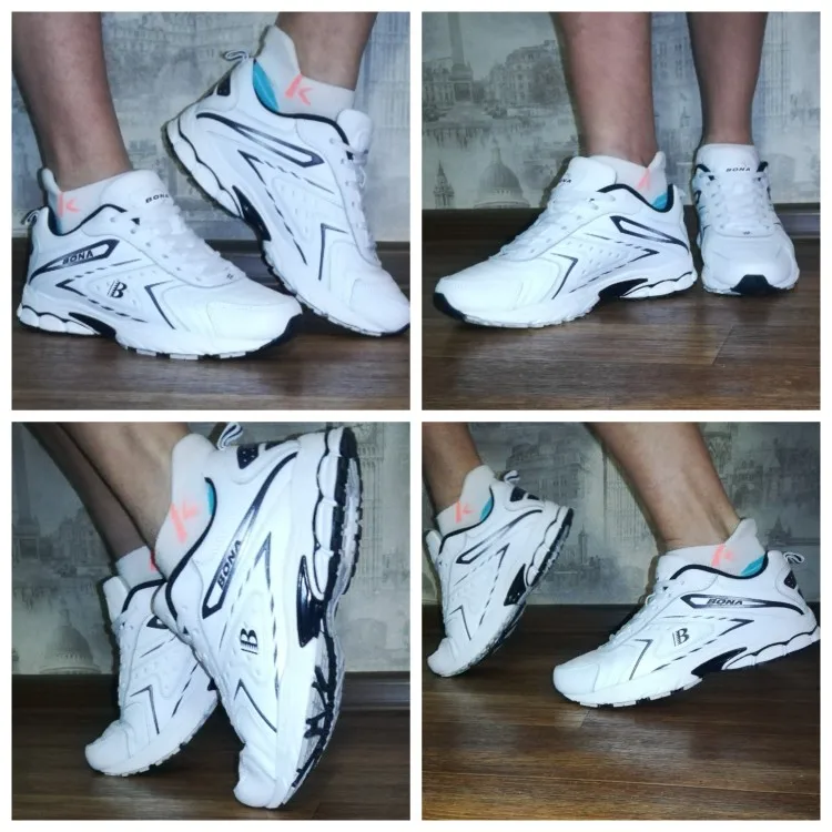 Кроссовки на вид отличные, моя первая покупка BONA, строчки ровные, нигде ничего лишнего. Очень удобные, лёгкие, как по мне так удобнее чем Найк. Продавец положил , по моей просьбе, стельки ортопедические, меньше пружинит нога в кроссовке,мне так даже больше понравилось . Короче, всё отлично, рекомендую. Спасибо продавцу!