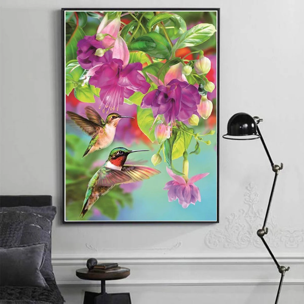 Алмазная 5d картина с колибри, цветы, вышивка стразами, мозаика, Подарочная настенная наклейка, украшение для дома