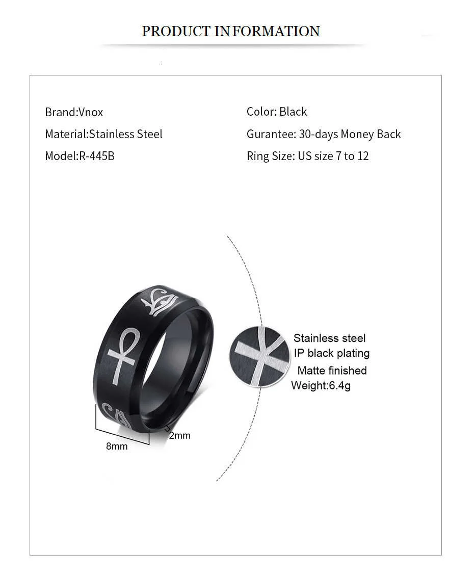 Египетский мужской стиль, нержавеющая сталь, черный цвет, глаз хора...