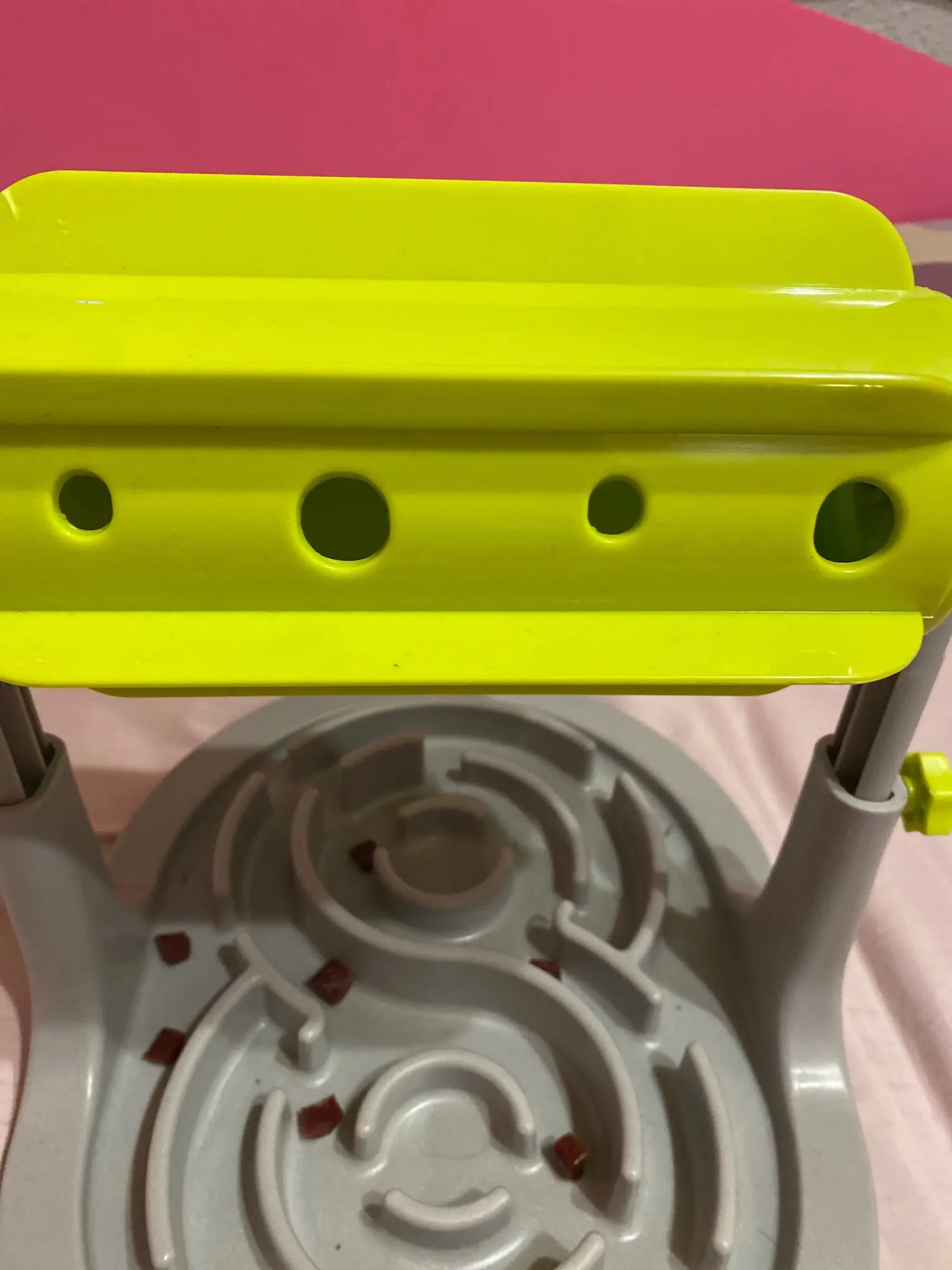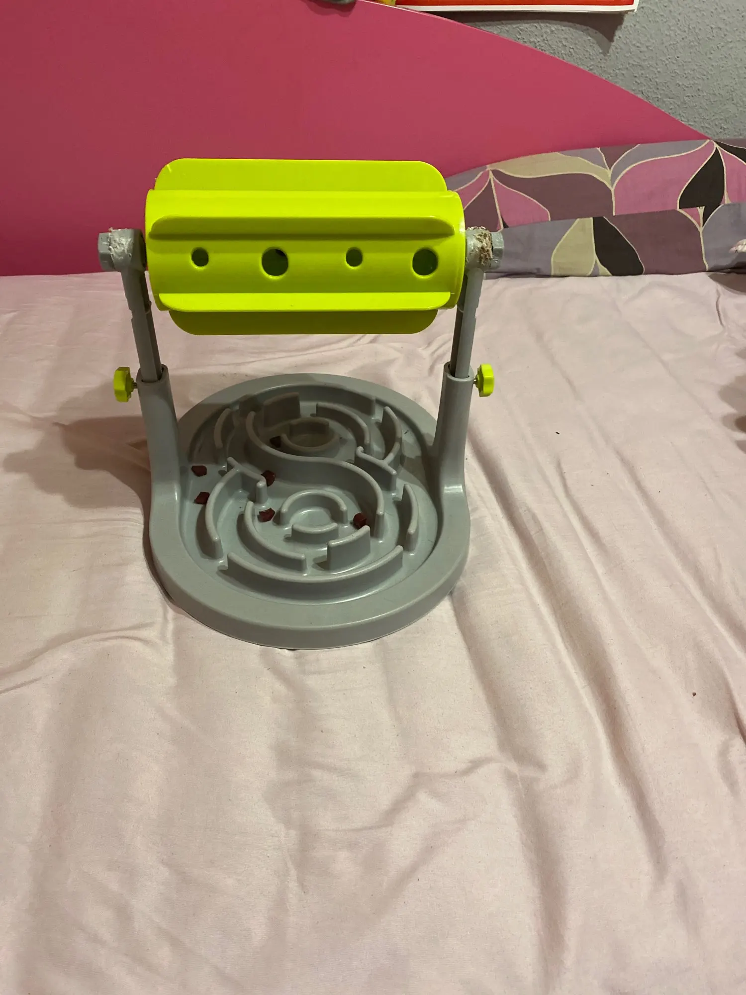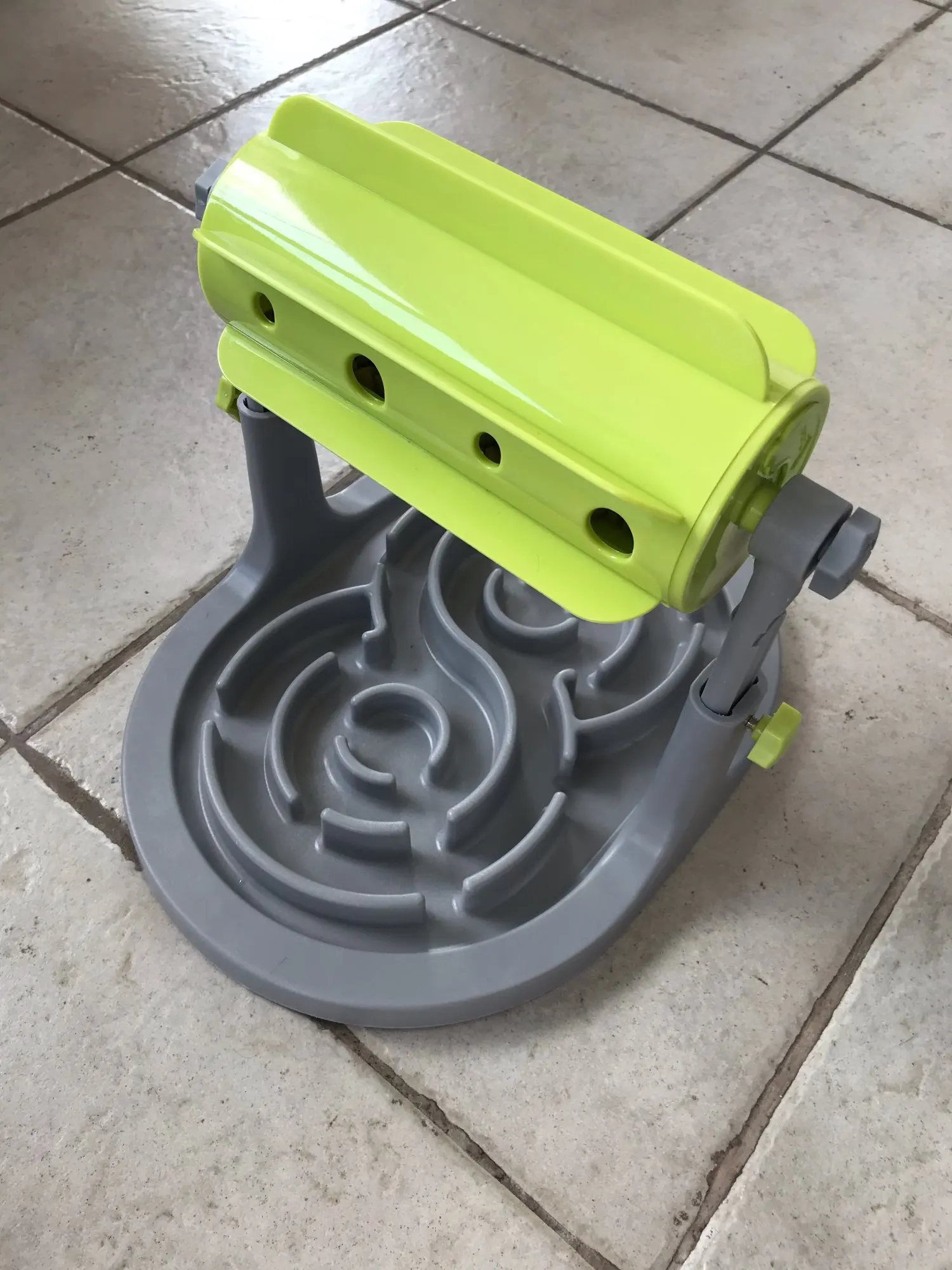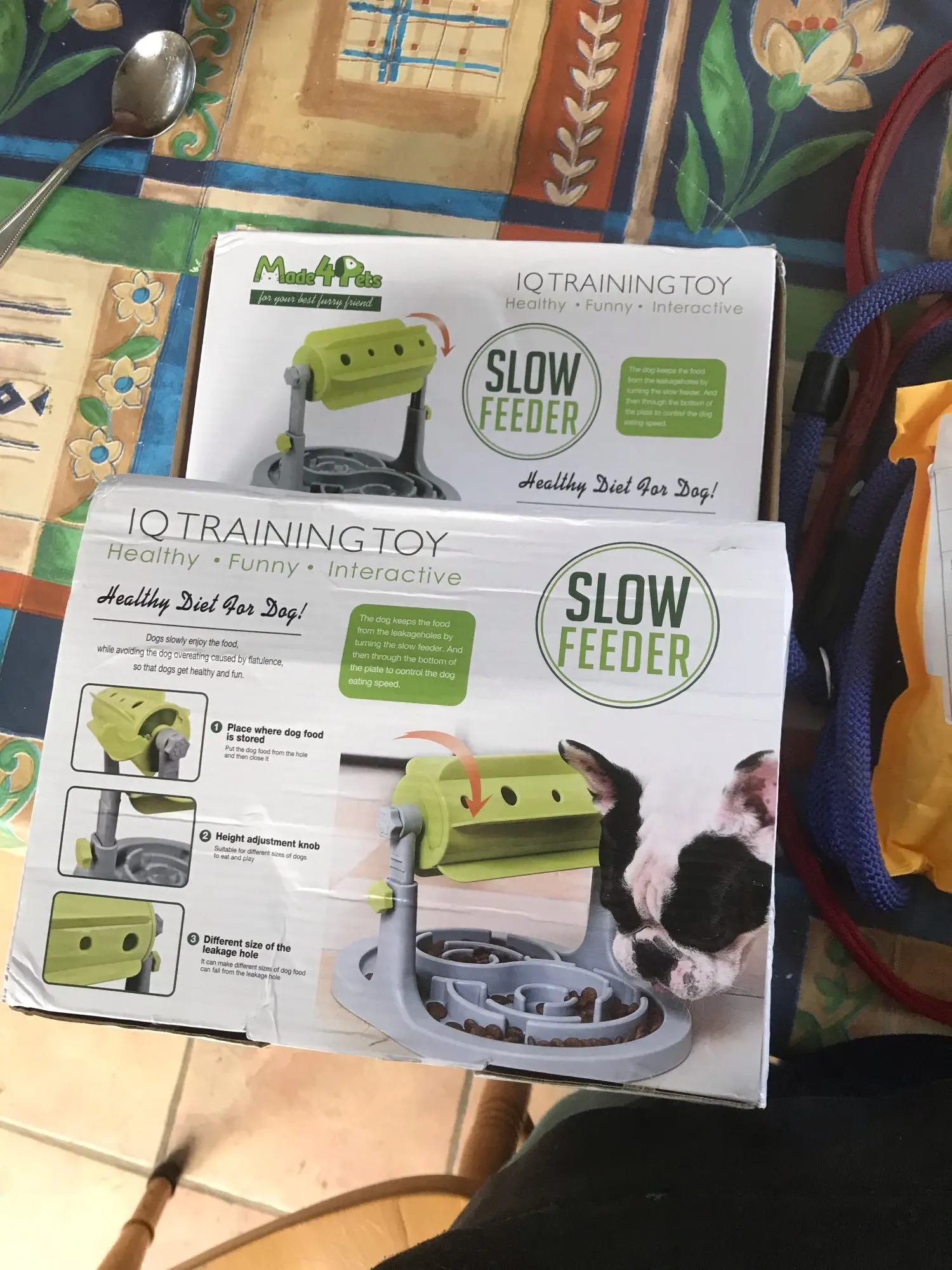 Как и в описании, очень легко собрать. Моя собака все еще в 5-месячном ребенке, и она не знает, как вытащить еду из нее, но она, безусловно, скоро учится. Он любит есть снизу и идти искать между отверстиями.