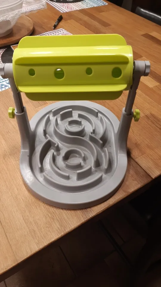 Доставка заняла больше двух месяцев, посылка хорошо упакована, доставлена в целости. Была небольшая проблема при сборке, но ее быстро удалось устранить - с помощью ножа удалили излишек пластмассы в отверстии. В остальном все чудесно - собака быстро поняла в чем фокус и с удовольствием начала добывать корм из кормушки. Жаль что нельзя загрузить видео. Пятерка с минусом производителю.