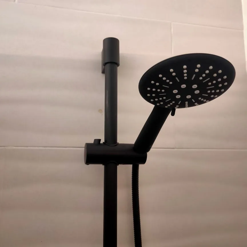 Регулируемая трехфункциональная черная душевая стойка с ручным душем и шлангом, настенное крепление для душа, набор раздвижных штанг, бесплатная доставка
