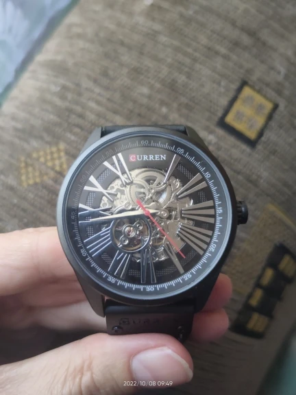Часы наручные CURREN Мужские механические, спортивные автоматические часы-скелетоны с турбийоном, с кожаным ремешком, с автоподзаводом